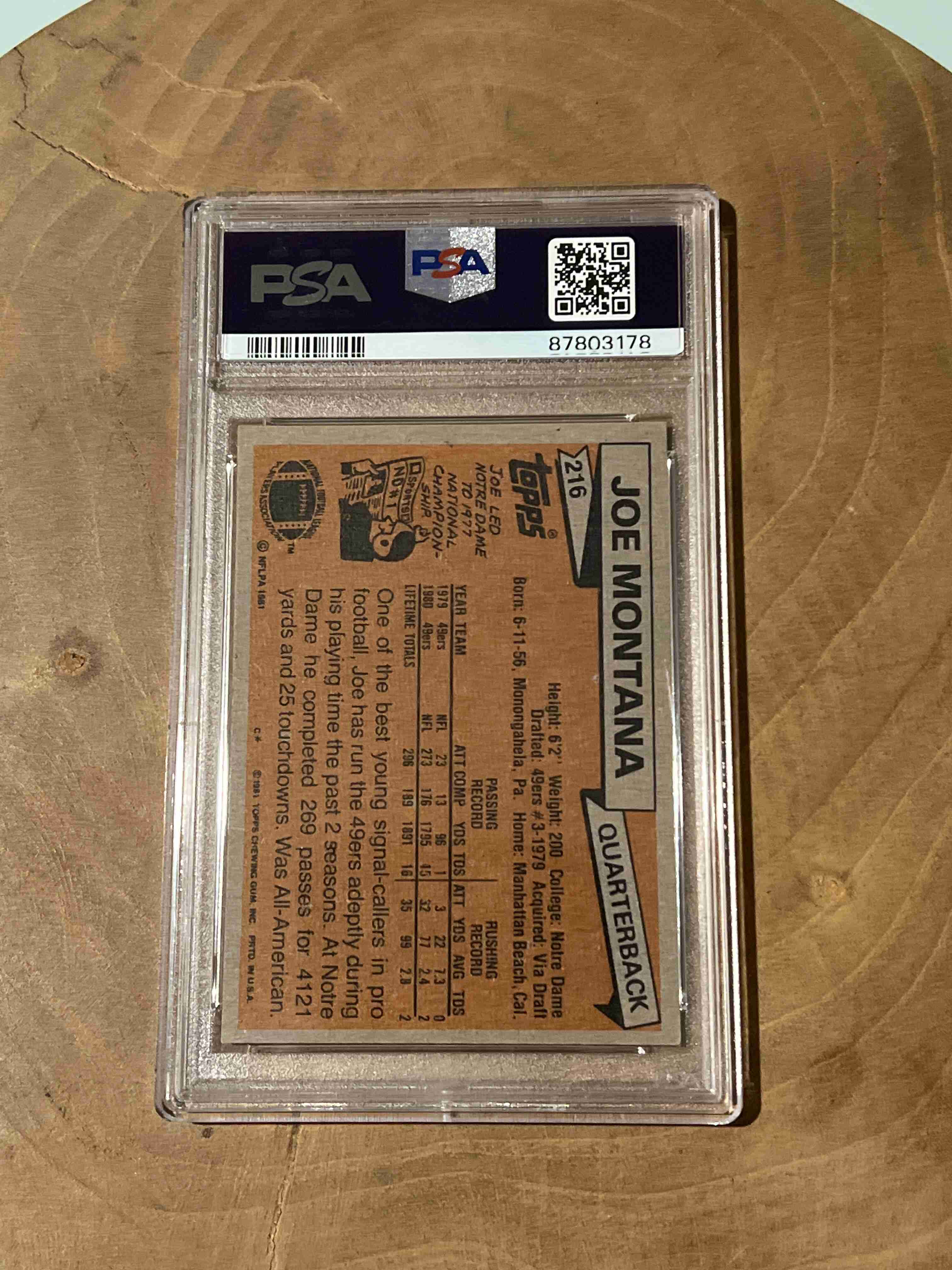 JOE MONTANA 1981 TOPPS RC (PSA 6)
