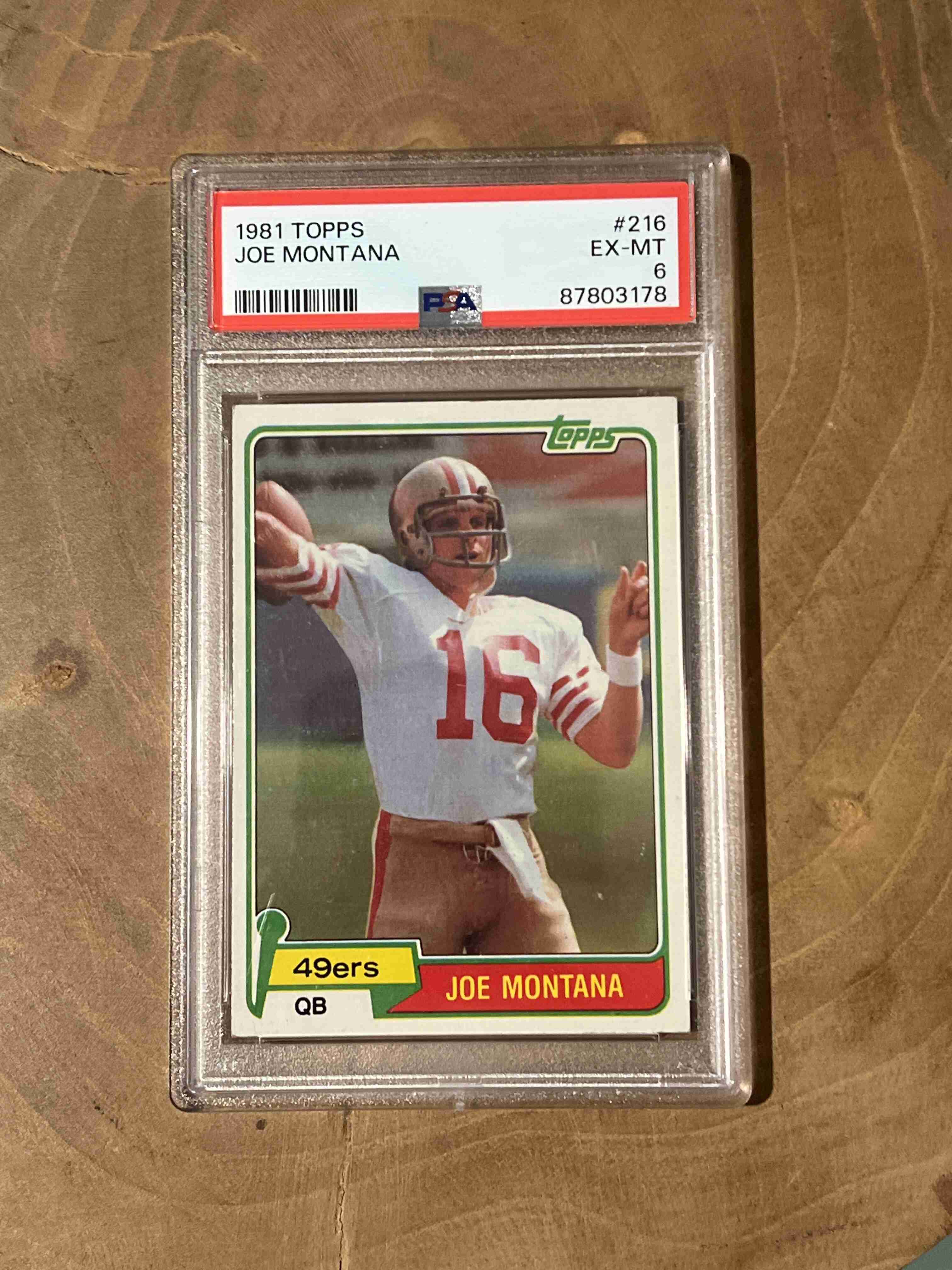 1981 TOPPS Joe Montana RC (PSA 6) great card of this Hall of Fame Quarterback.