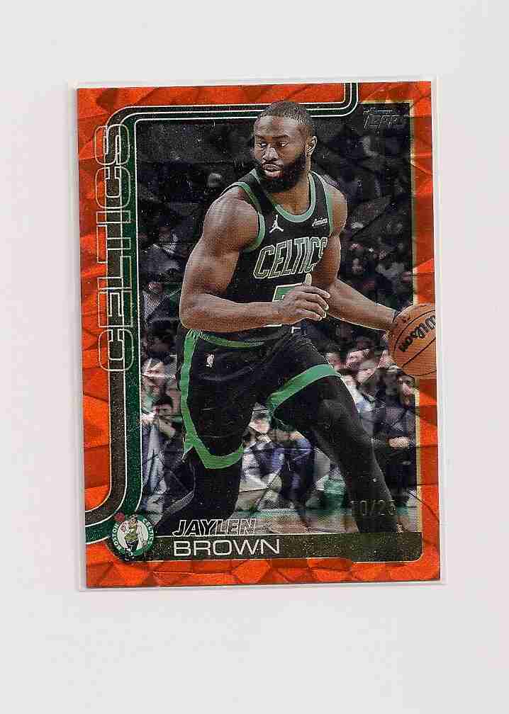 Jaylon Brown 2025/26 Topps Orange Diamante Parallel, card #2 numbered 10/25. Card is near mint to mint. Card will be in a penny sleeve, top loader and shipped in a bubble mailer with tracking.