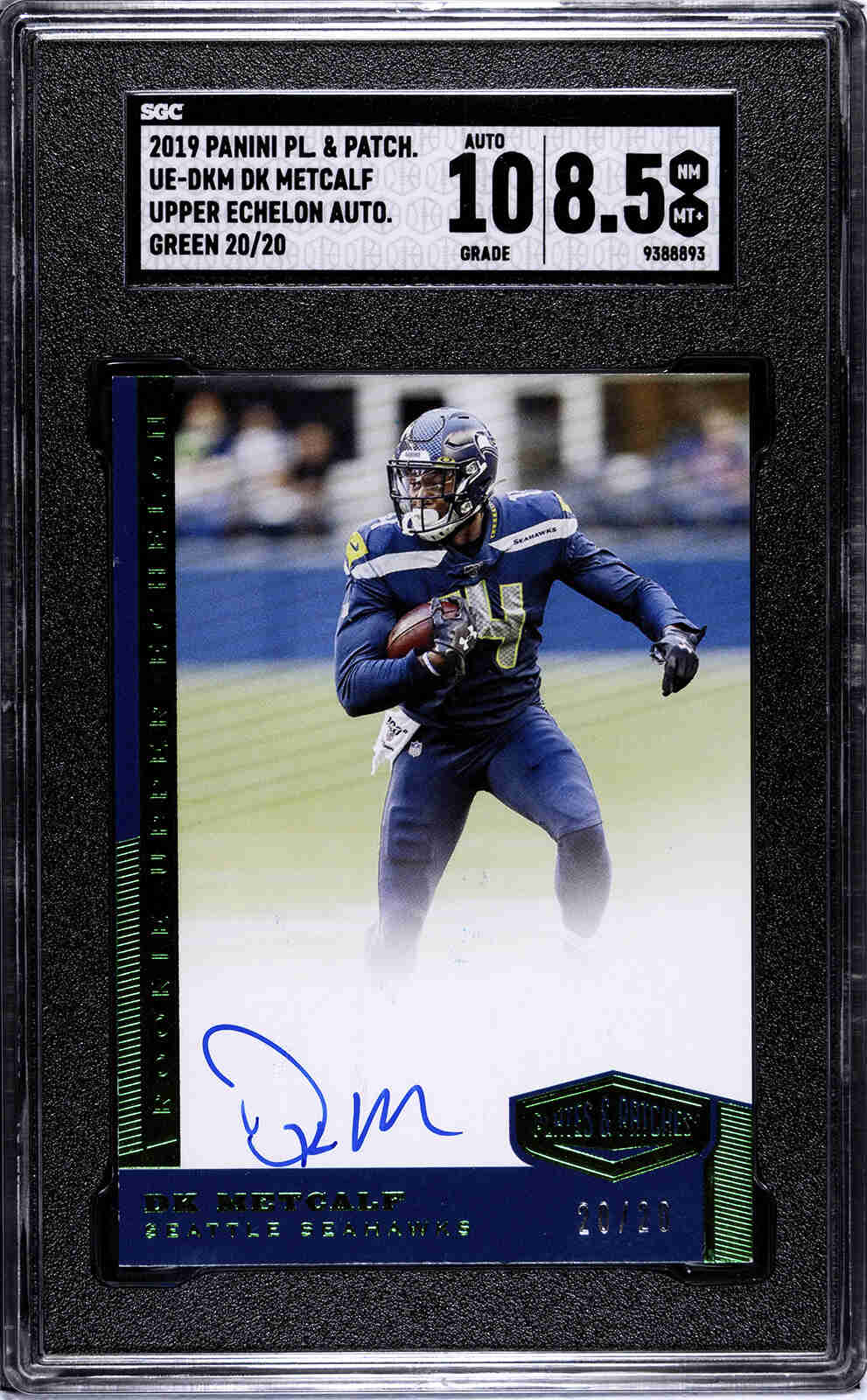 2019 Plates and Patches Upper Echelon Green Auto /20 RC DK Metcalf SGC 8.5 / 10 Auto