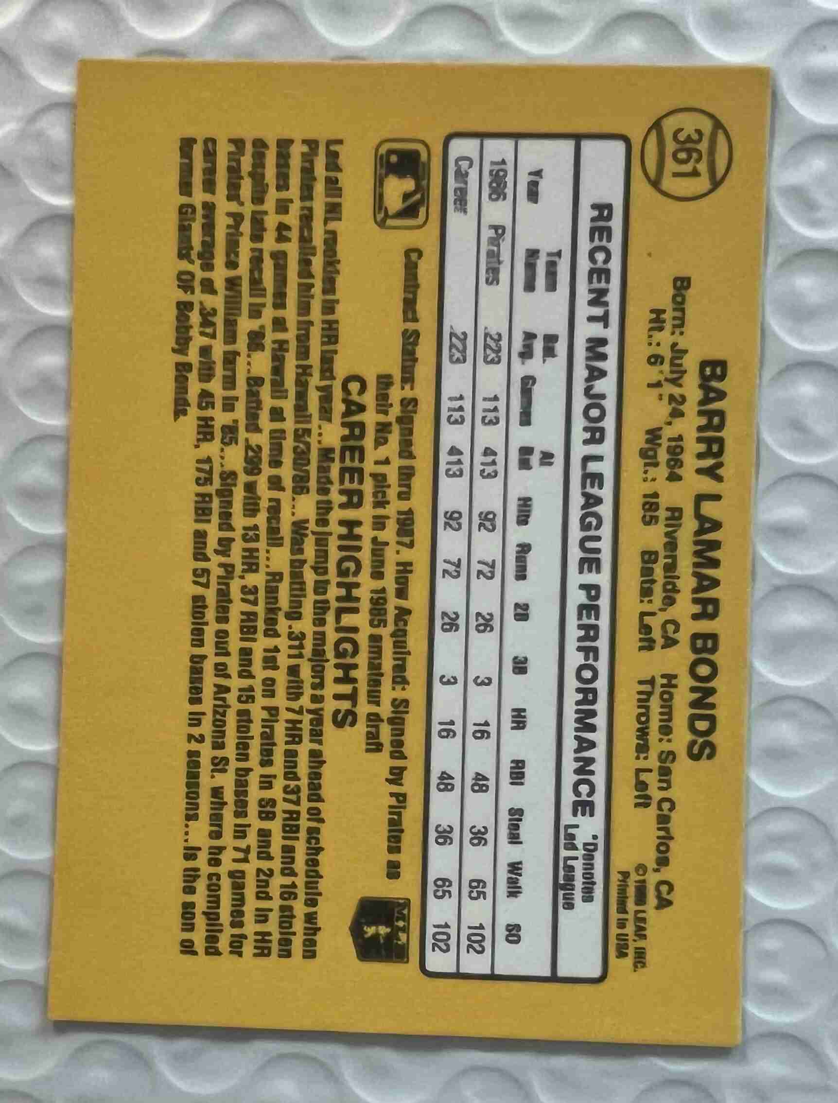 This auction is of a 1987 Donruss Barry Bonds Rookie card. Card is in Ex to Nrmt condition. Look at the pics and judge for yourself. If any questions please feel free to contact me. Thank you for looking at my auctions.