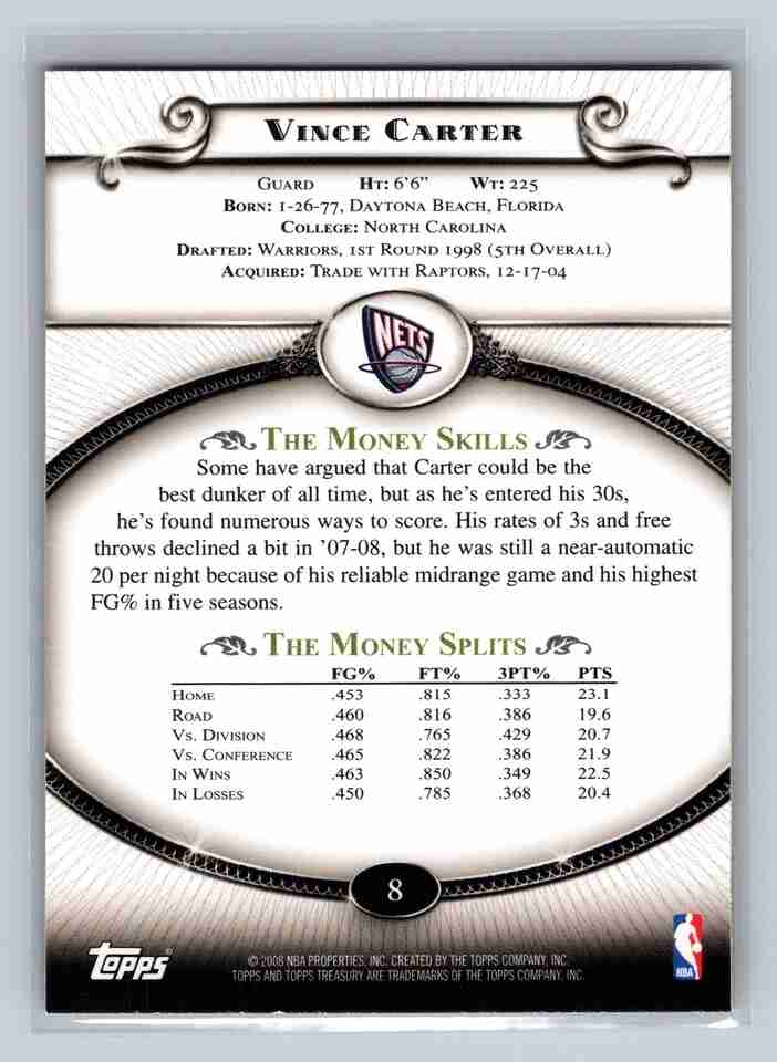 2008-09 Topps Treasury #8 Vince Carter