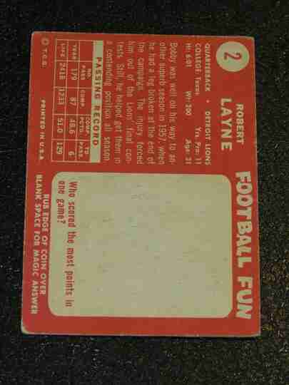 1958 Topps #2 Bobby Layne - VG/VG+ - BV $35