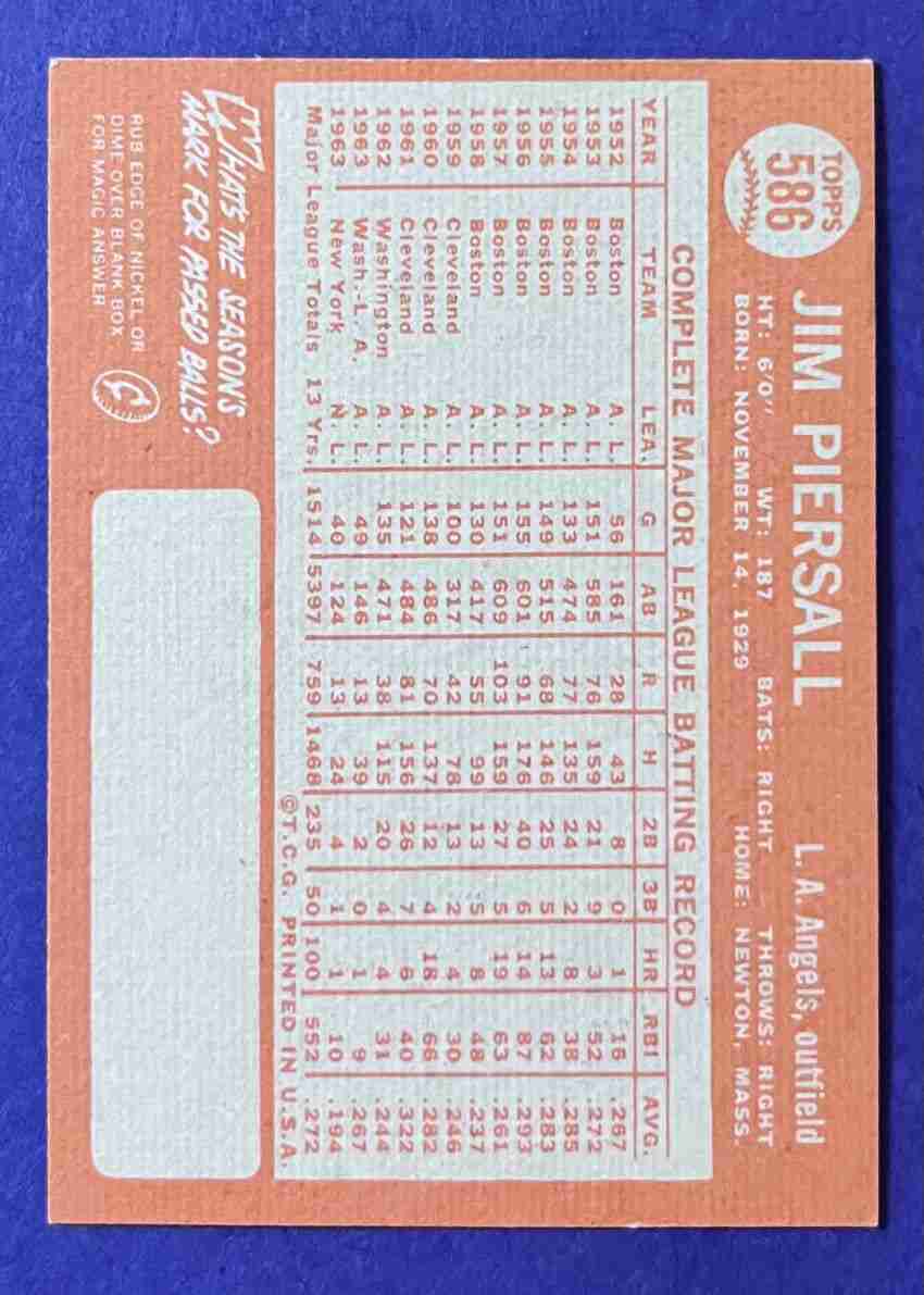 64 Topps JIMMY PIERSALL Hi #586 ++
