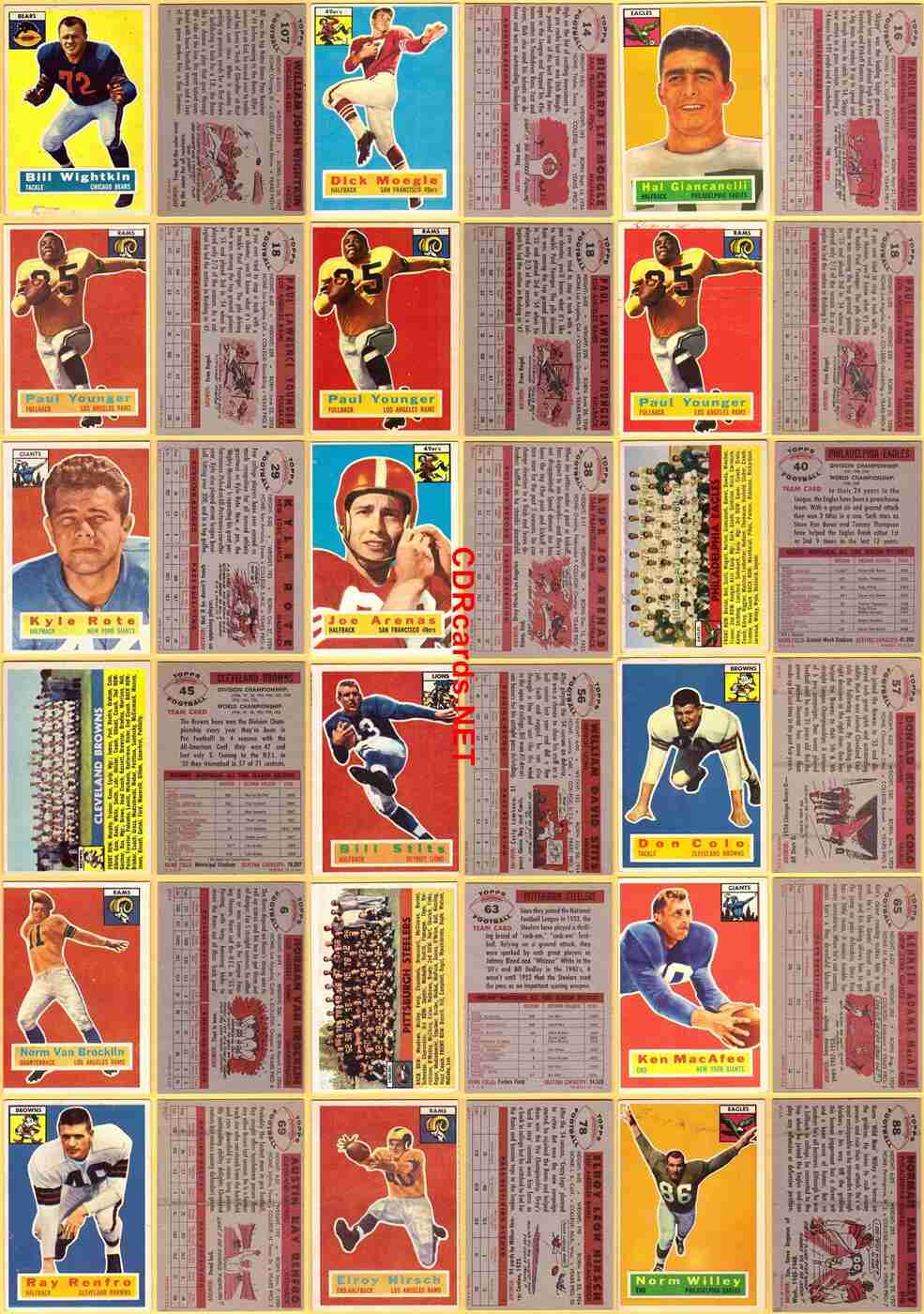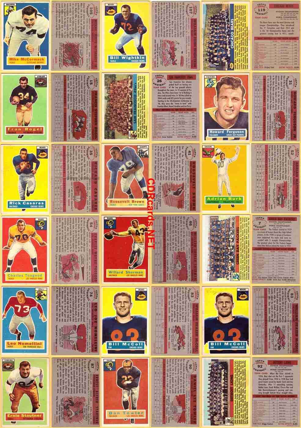 1956 Topps Football <> 72 cards <> 11 Rcs [SL234] $250bv