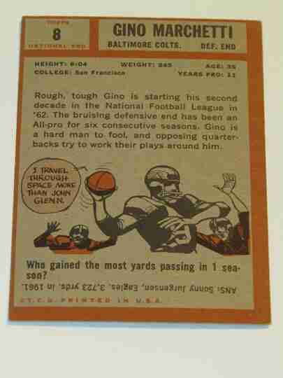 1962 Topps #8 Gino Marchetti - VG+/EX - BV $8