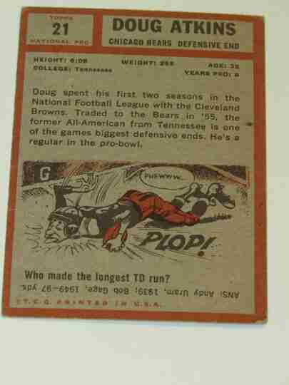 1962 Topps #21 Doug Atkins - G/VG - BV $8