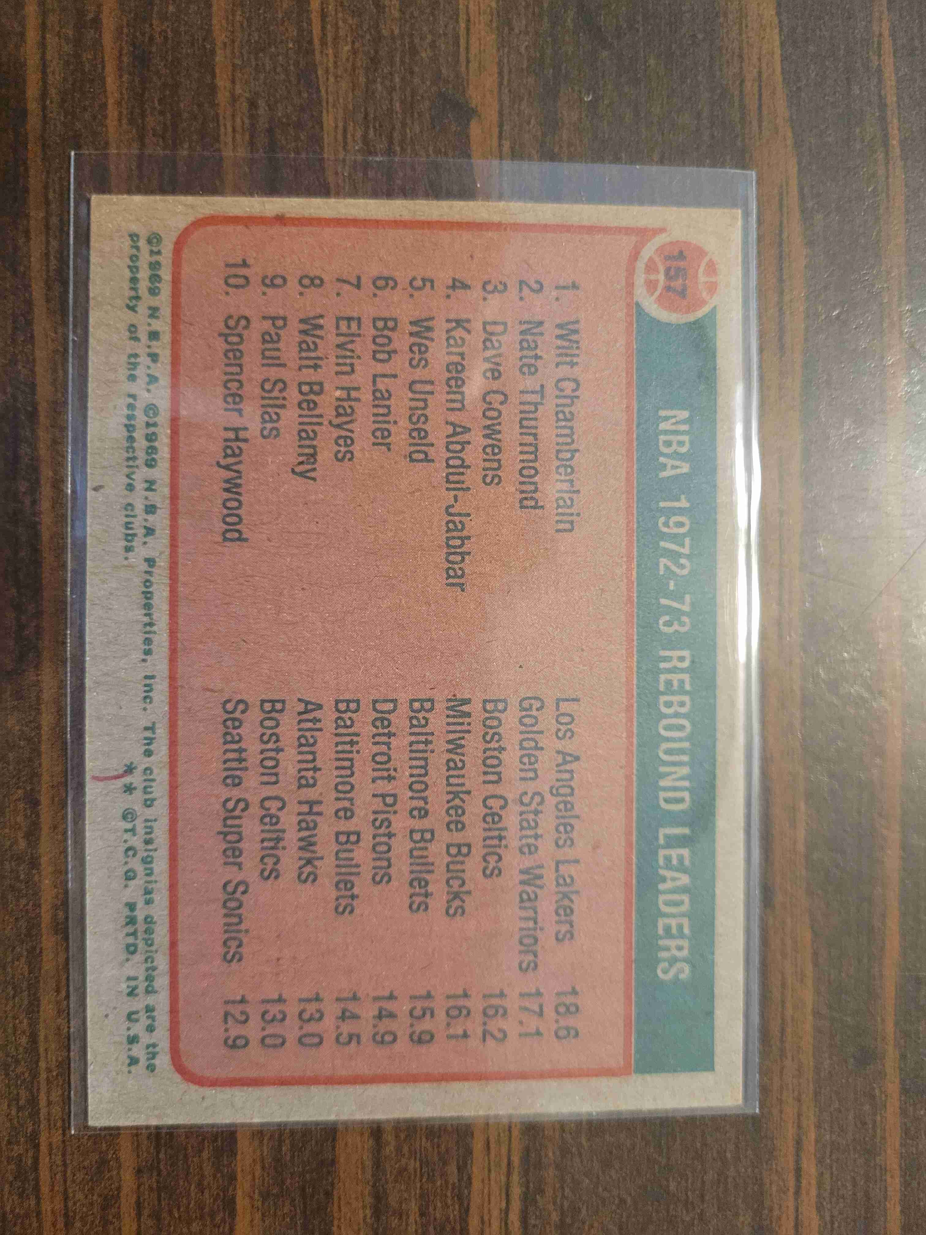 1973-75 TOPPS NBA REBOUND LEADERS #157