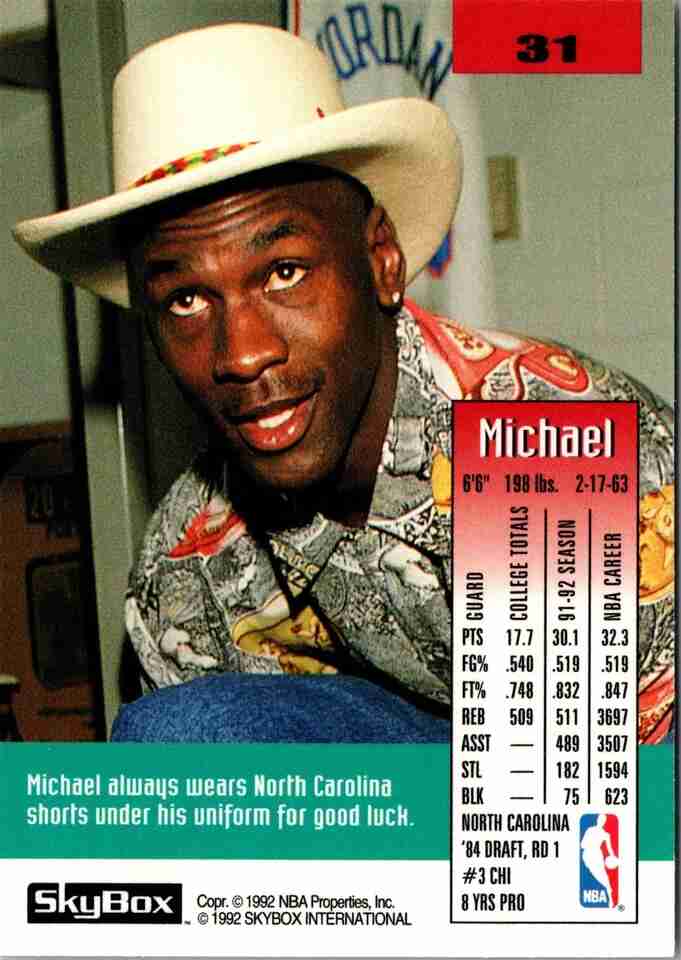 Michael Jordan-1992 Skybox #31 Chicago Bulls