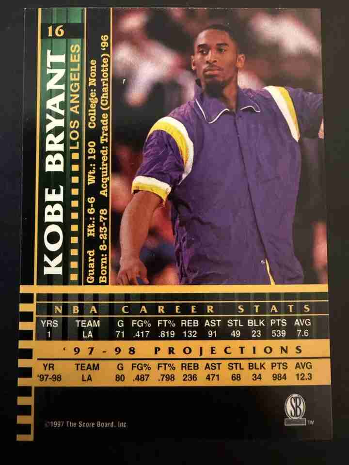 KOBE BRYANT 1997 SCORE BOARD PLAYERS CLUB #16 2ND YEAR LAKE