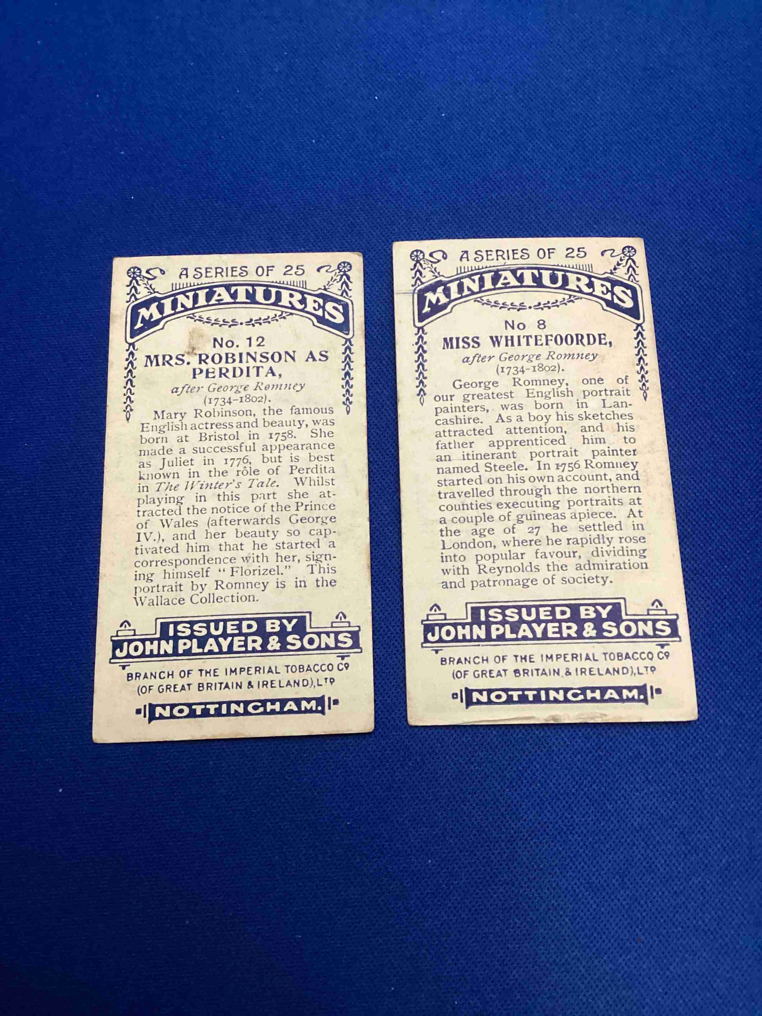Lot of 2 1923 Miniatures of famous paintings