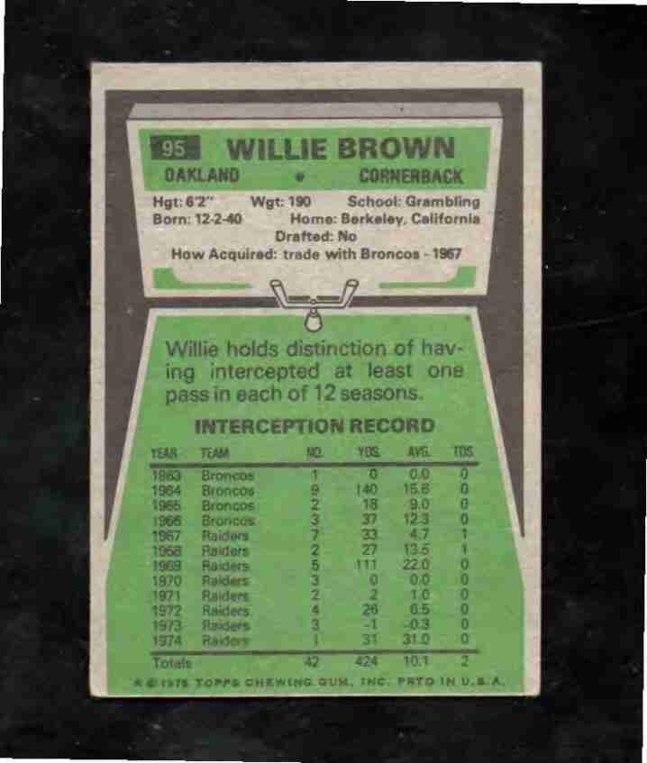 1975 Topps # 95 HOFer WILLIE BROWN Raiders