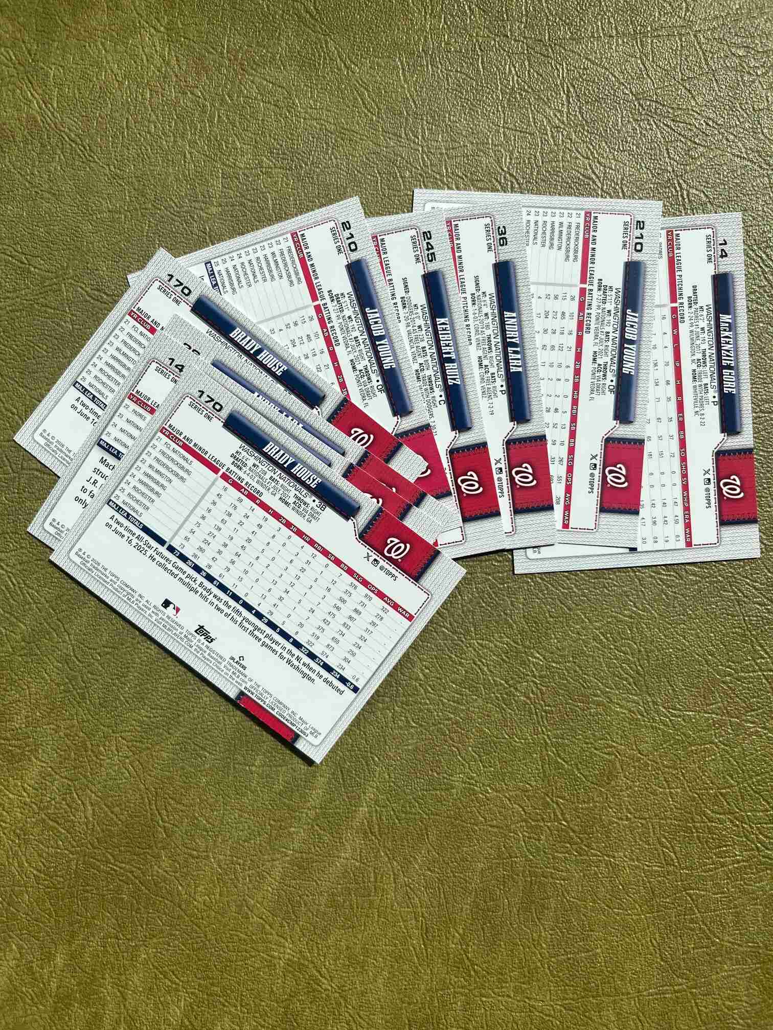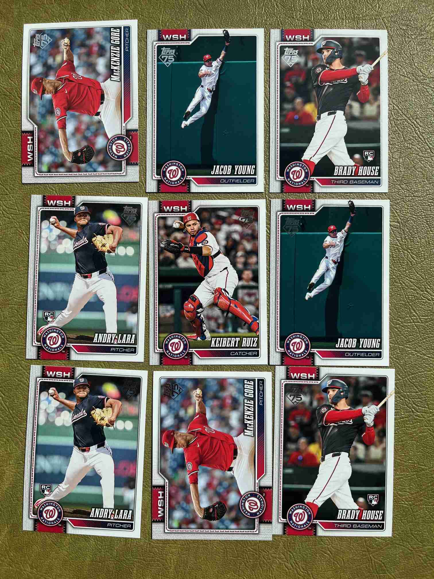 Lot of nine(9) Washington Nationals cards from the new 2026 Topps Series One release. Includes 4 doubles- see photos for cards in lot and pack-fresh conditions. See other team lot auctions to combine shipping. Brady House Rookie Card etc.