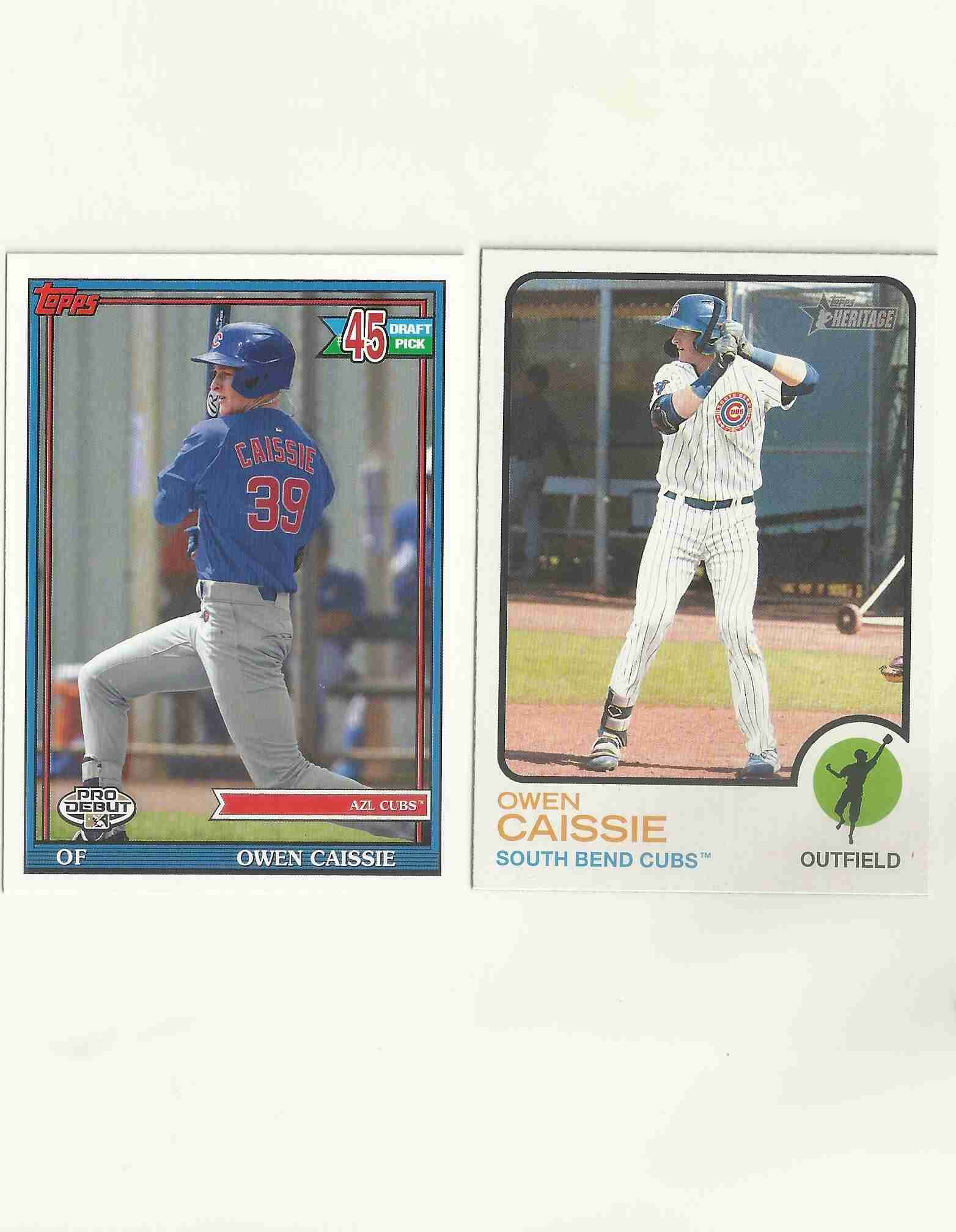 Lot of two Owen Caissie rookies- 2021 Topps Pro Debut #PD-181 and 2022 Topps Heritage Minor League #134