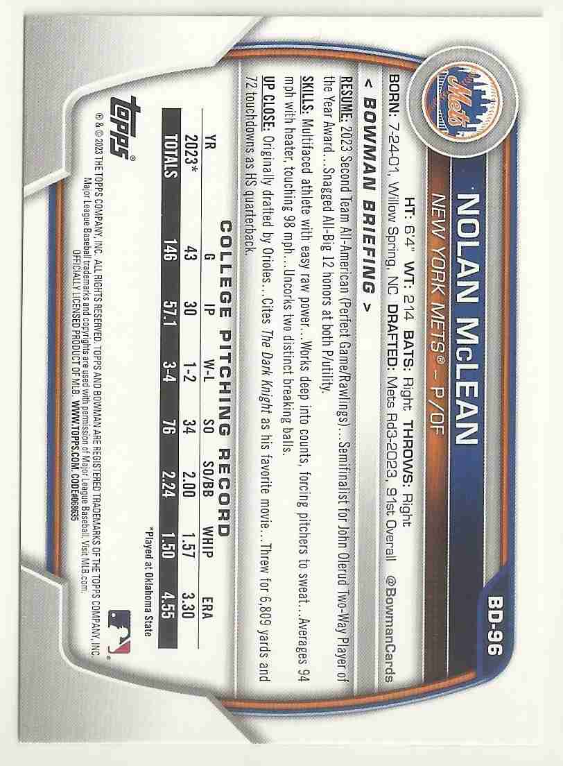 2023 Bowman Draft 1st NOLAN MCLEAN BD-96 RC