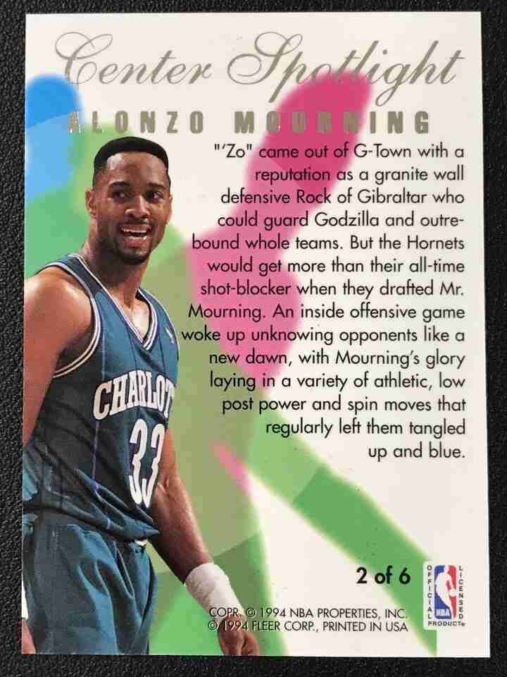 1994-95 Flair #2 Alonzo Mourning Charlotte Hornets Center Spotlight