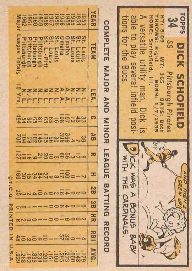2-Topps Dick Schofield #34 1963 #218 1965 Pirates