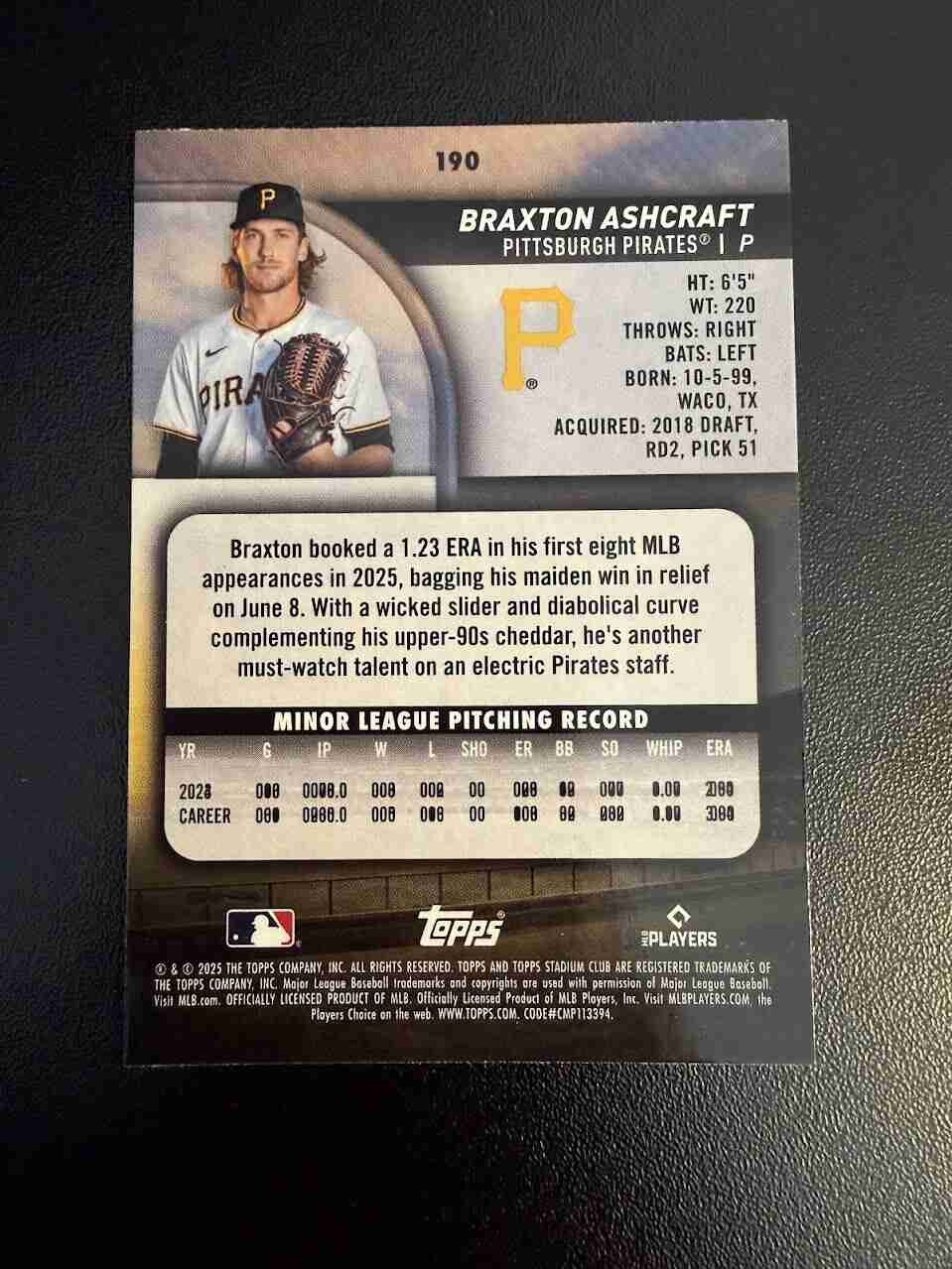 2025 Topps Stadium Club Braxton Ashcraft Rookie ERROR