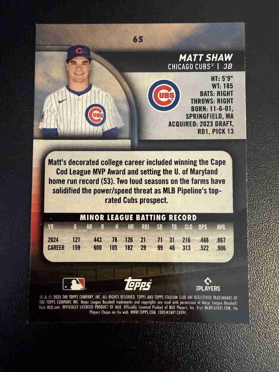 2025 Topps Stadium Club Matt Shaw Rookie ERROR