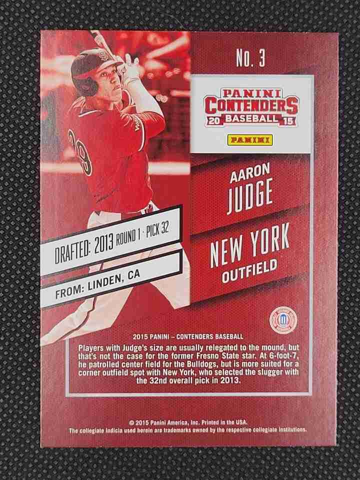 2015 Panini Contenders Aaron Judge #3 Season Ticket NY Yankees