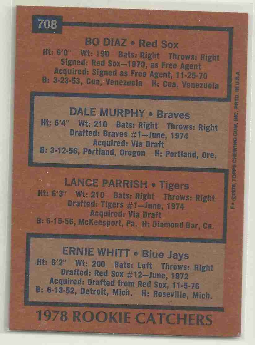 1978 Topps #708 LANCE PARRISH/DALE MURPHY Rookie Catchers