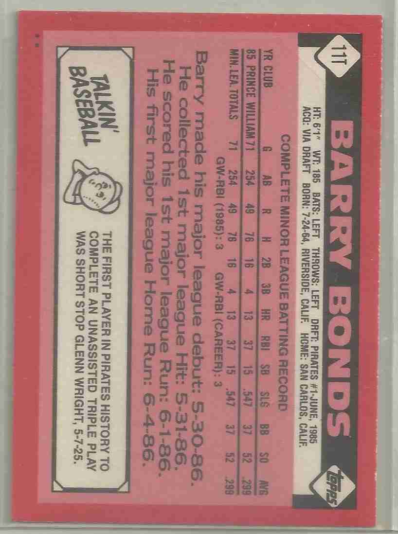 1986 Topps Traded #11T BARRY BONDS RC