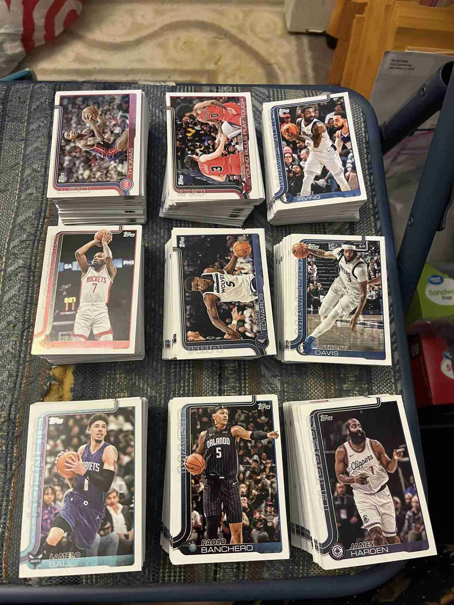 This auction is for a lot of 917 2025-26 Topps NBA base cards. These are mostly commons with some minor stars in the lot. The biggest stars (like Wemby, Luka, LeBron etc) will NOT be found in this lot. There are NO cards with the RC rookie logo included. These are leftovers from my opening packs to build sets. There are heavy doubles of some cards and not many of others.