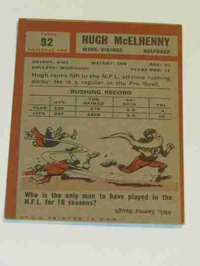 1962 Topps #92 Hugh McElhenny SP - VG/VG+ - BV $30