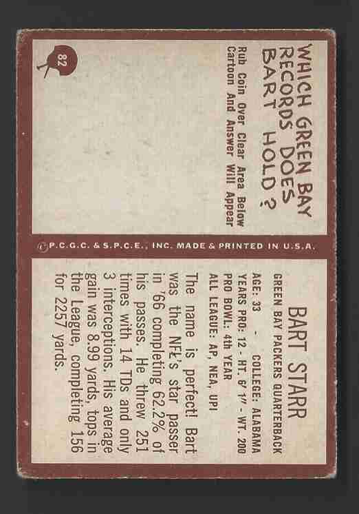 1967 Phila Gum Bart Starr (HOF) -#82- Packers