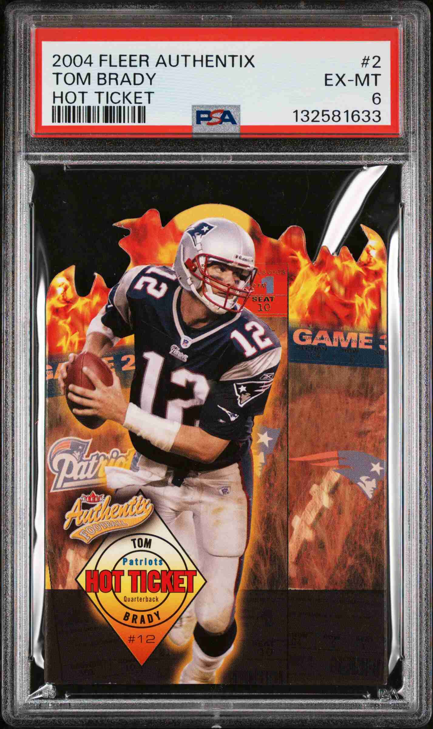 2004 FLEER AUTHENTIX HOT TICKET DIE CUT #2 TOM BRADY PSA-6. Card will ship in between cardboard and inside a bubble mailer with tracking.