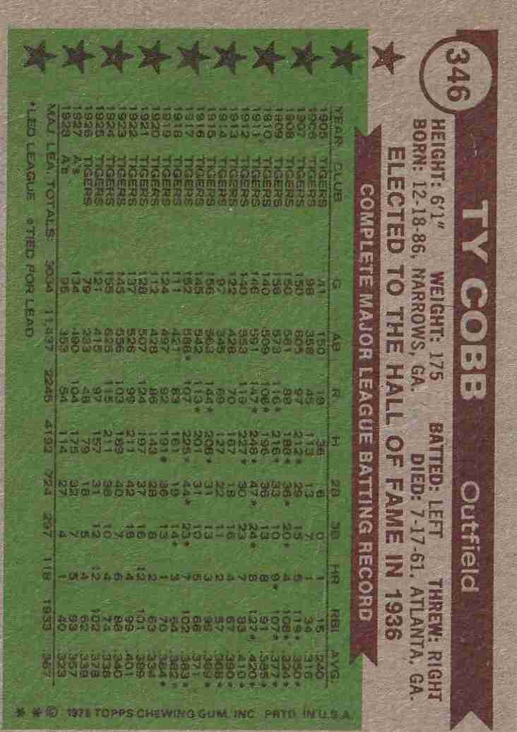 #346 Ty Cobb (EX/EX+) #350 Grove (EX+/Better) OC