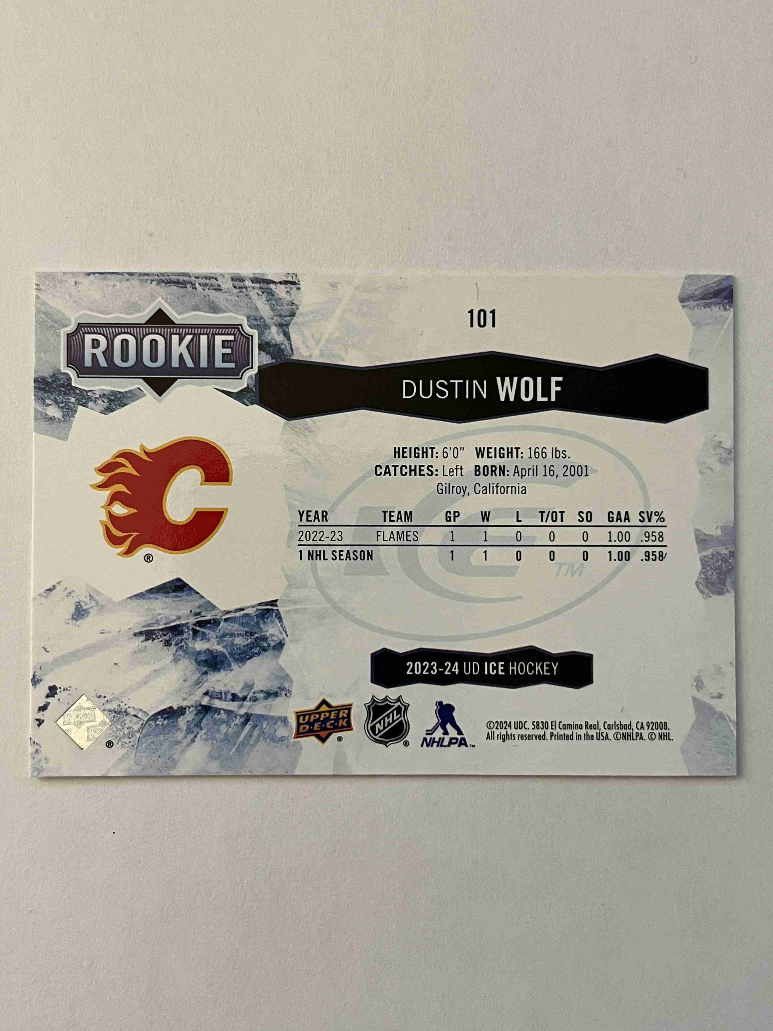 Dustin Wolf 2023-24 UD Ice Rookie RC #101