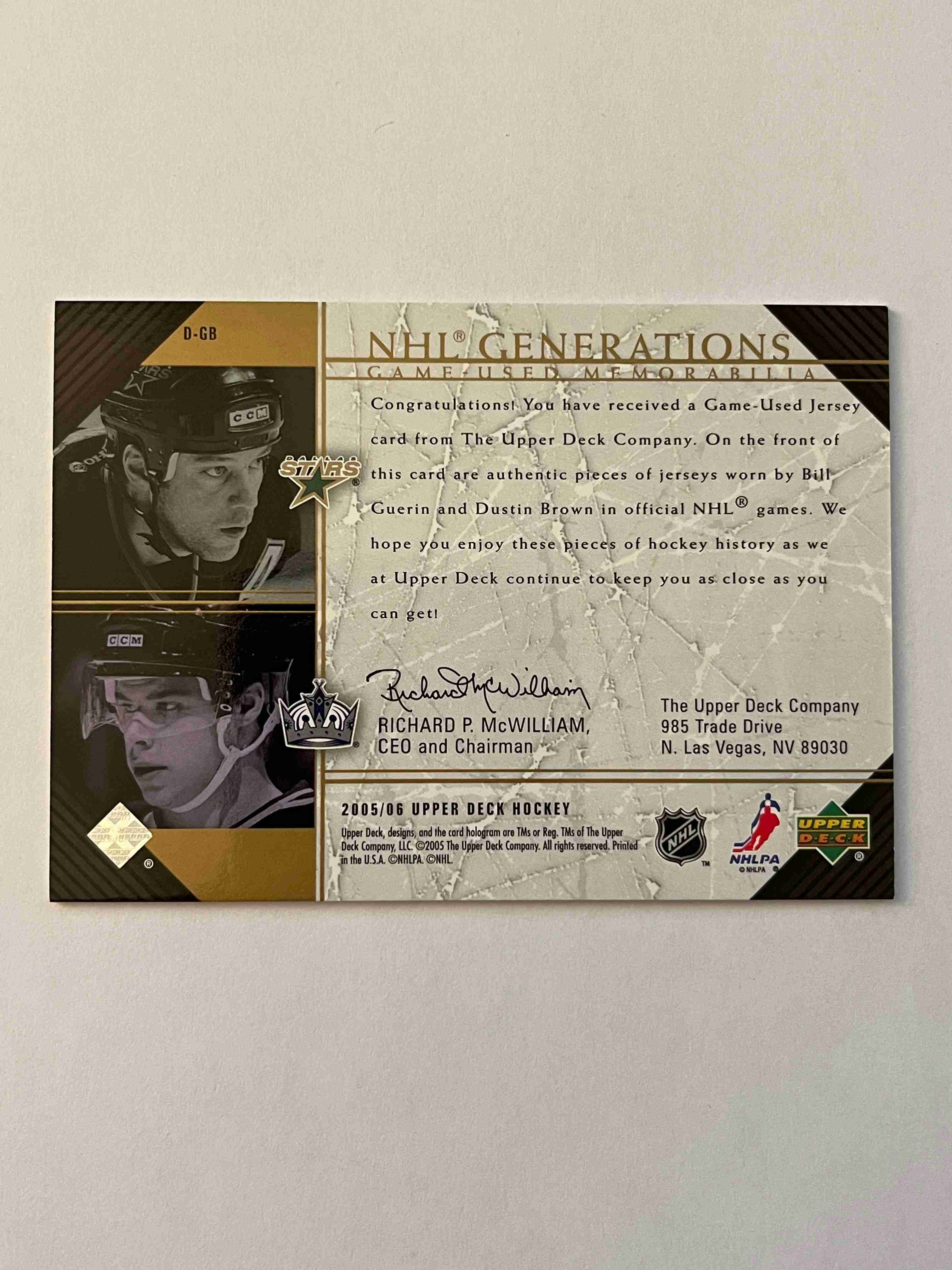 Bill Guerin/Dustin Brown 2005-06 UD NHL Generations Dual Js