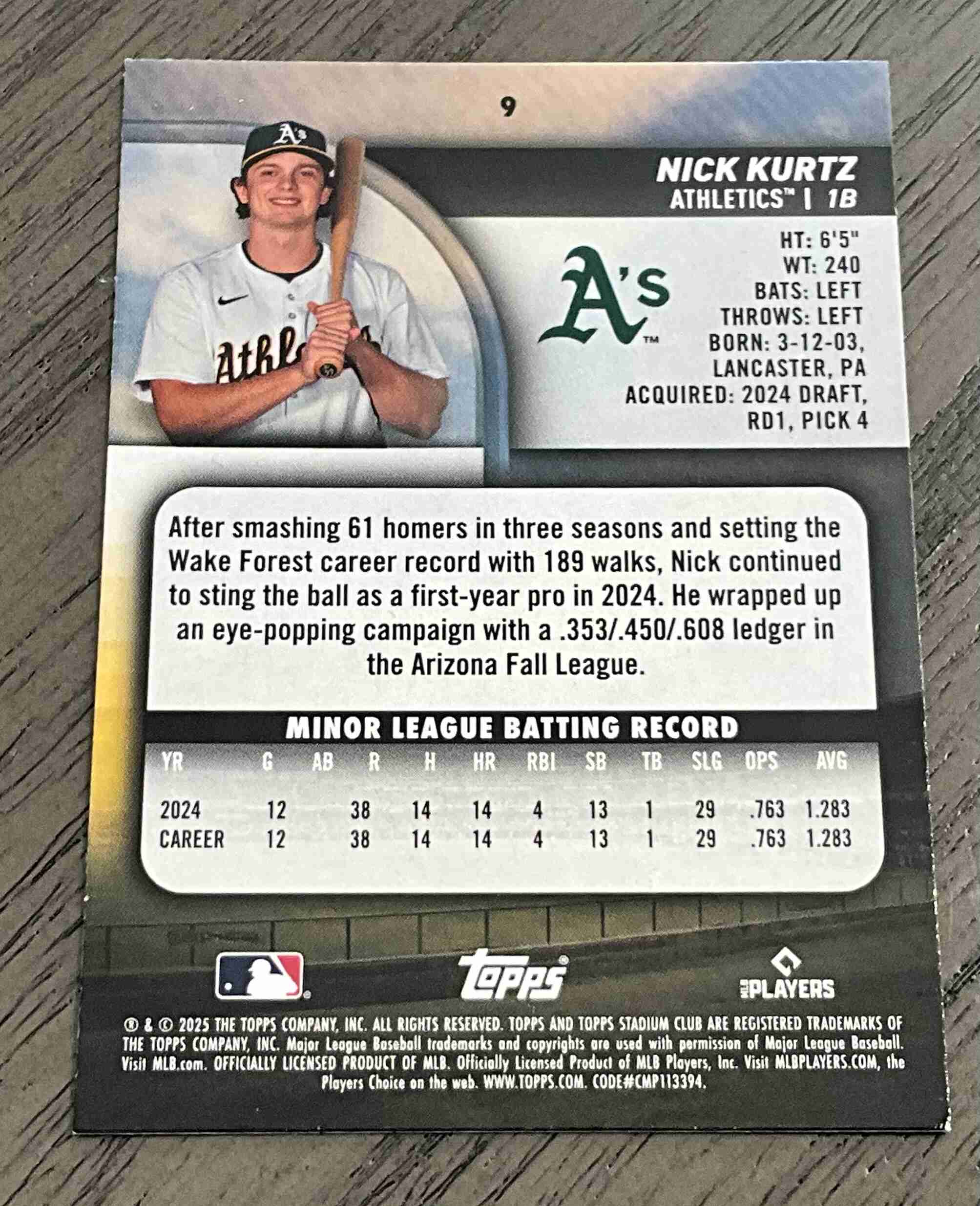 Nick Kurtz Rookie 2025 Topps Stadium Club Athletics