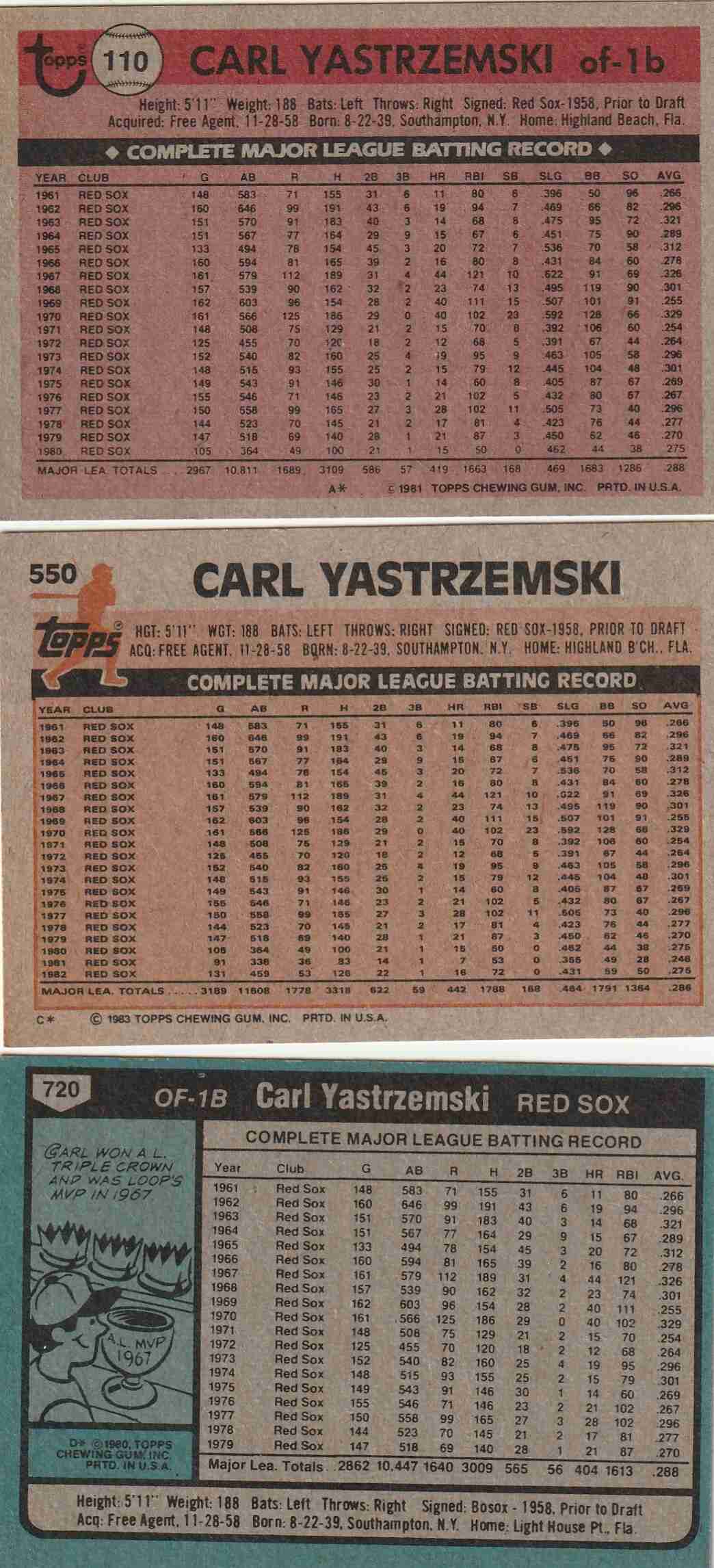 1980 #720 AL All Star (EX/EX+) lower right tip blemish 1981 #110 (EX/NM) 1983 #550 (EX/NM)