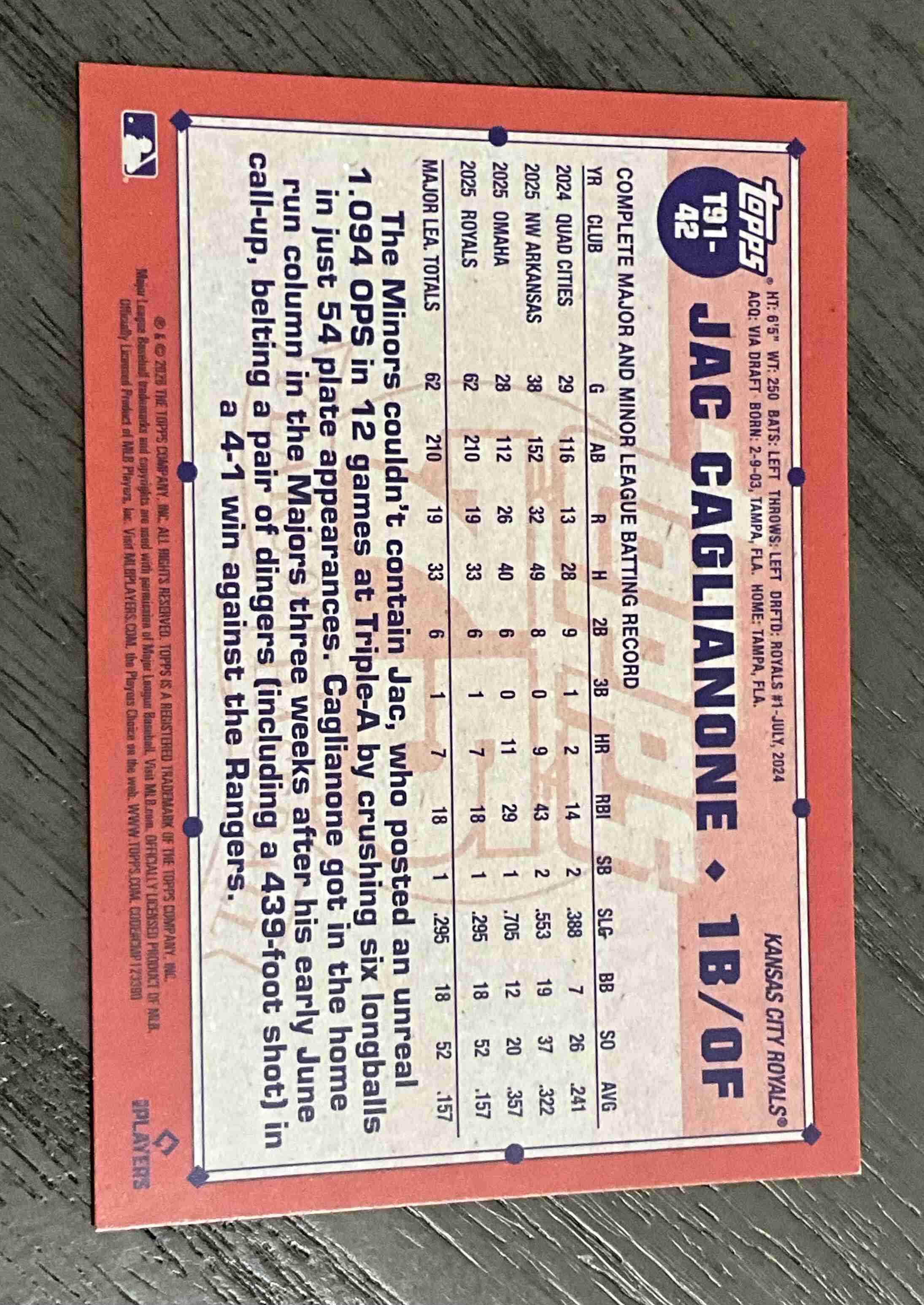 Jac Caglianone Rookie 2026 Topps 75 Years of Baseball Royal