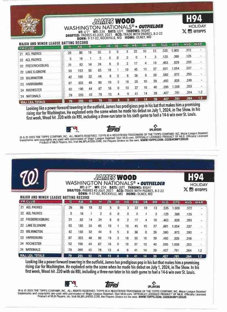 2025 James Wood Topps Holiday Base/Cookie ROOKIE Lot H94