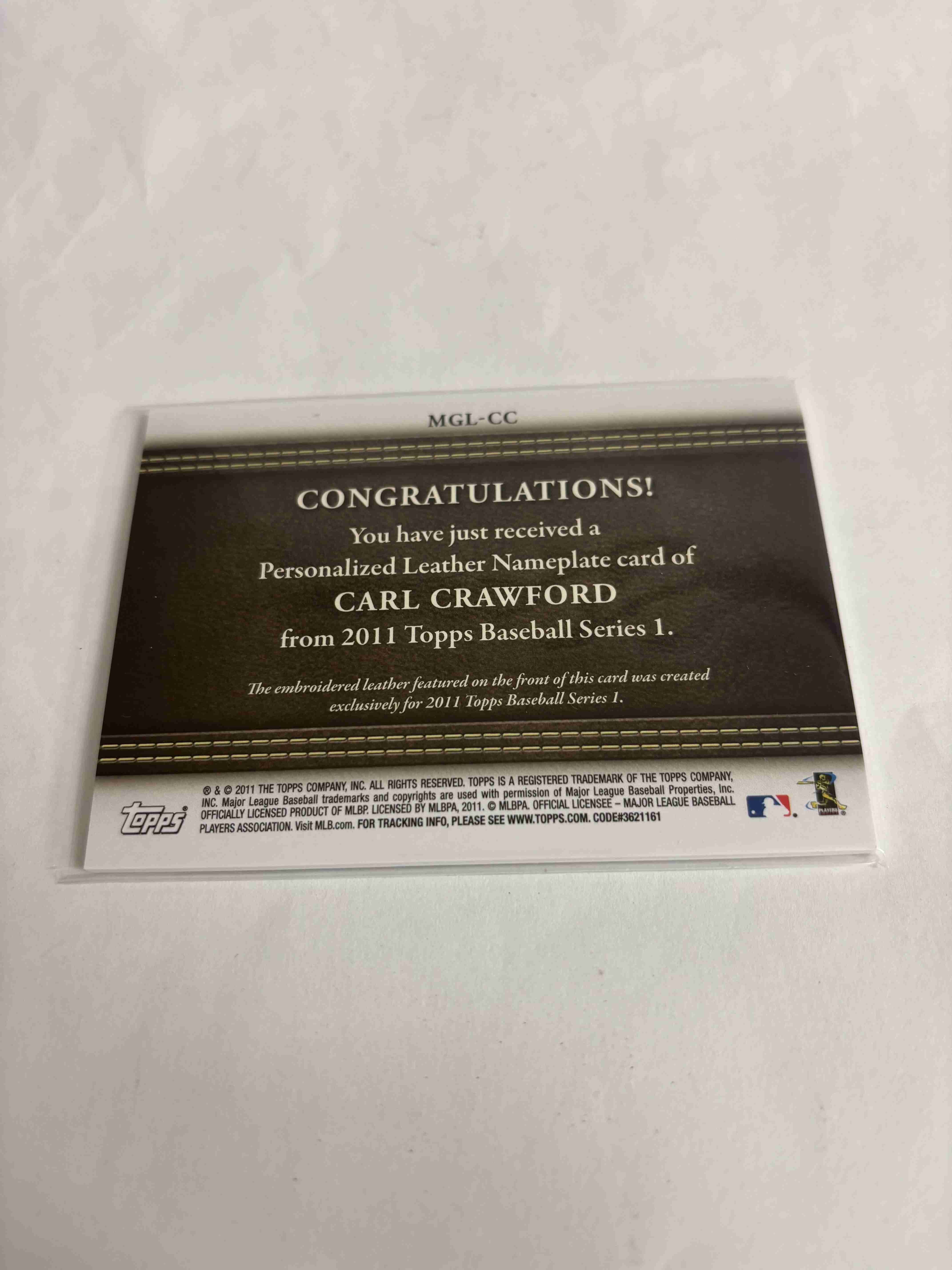 2011 Topps Personalized Leather Nameplate Carl Crawford (MGL-CC). Thanks for looking. Card will be mailed in bubble envelope next day following payment.