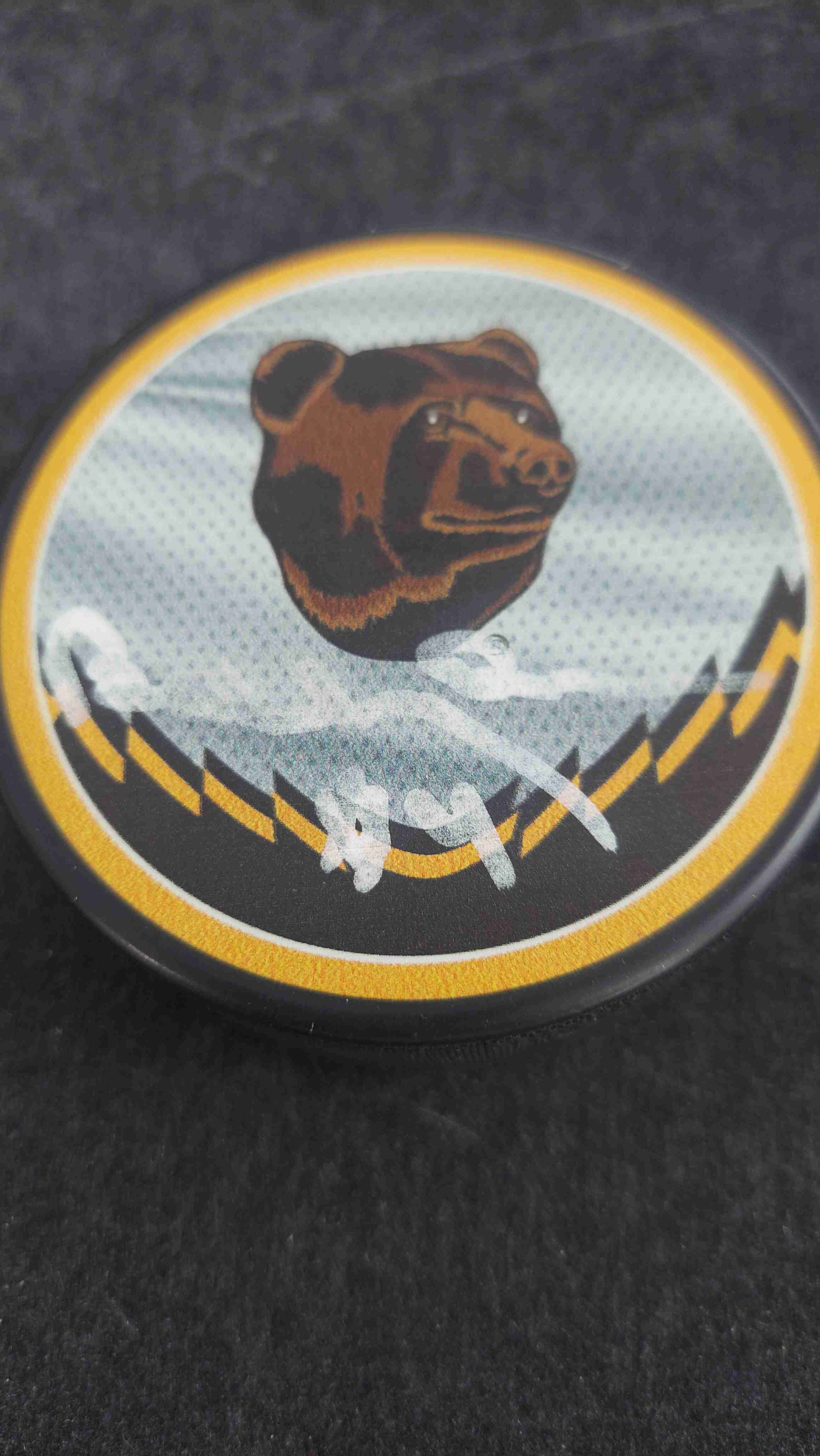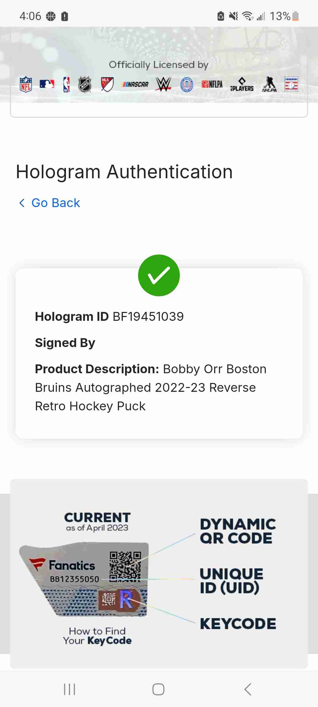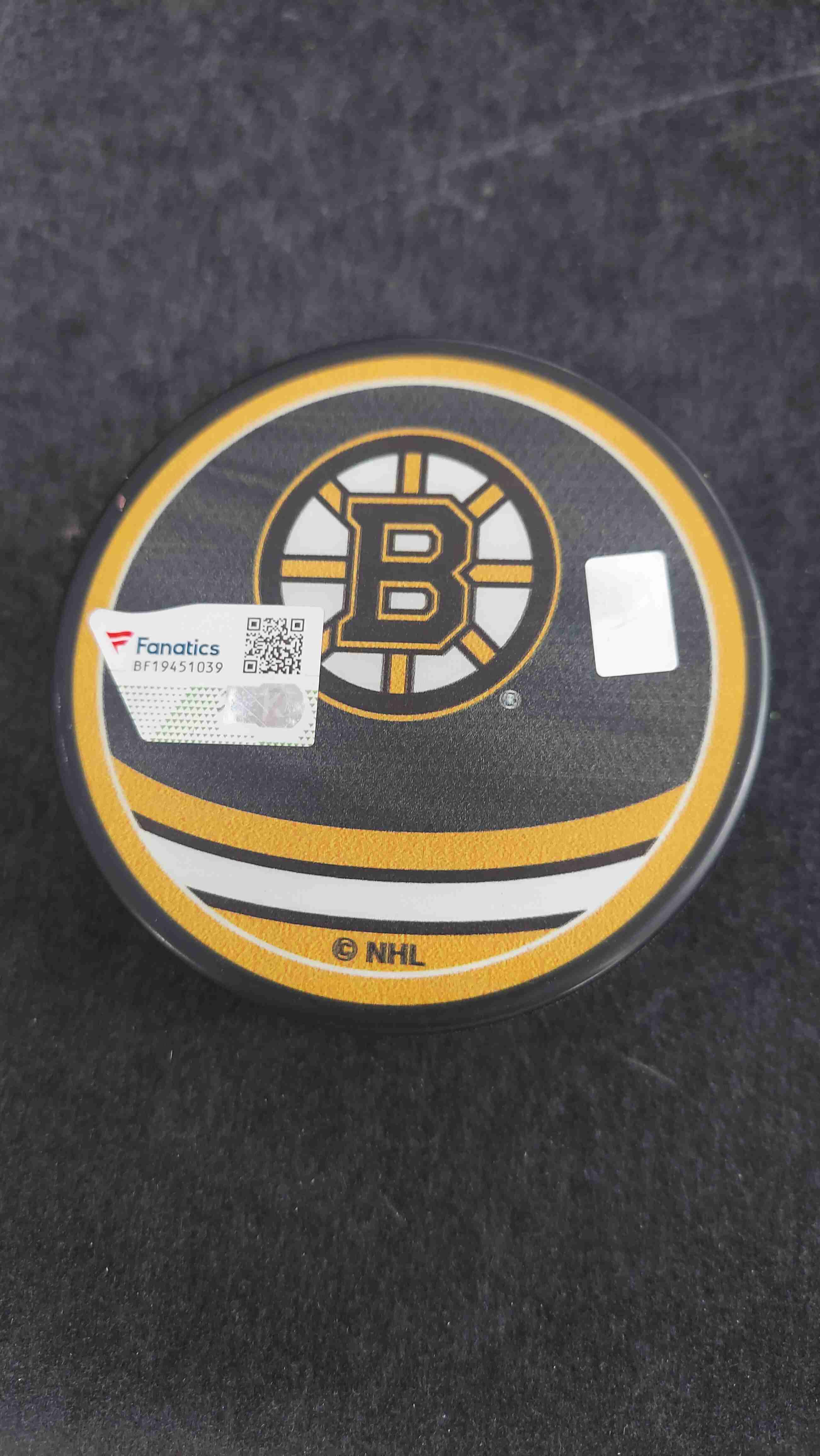 This is a fanatics holigramed authenticated bruins retro hockey puck signed by Bobby Orr. Looks like it was signed in silver sharpie so not the most pronounced autograph of Orr that I have seen but nonetheless guaranteed authentic