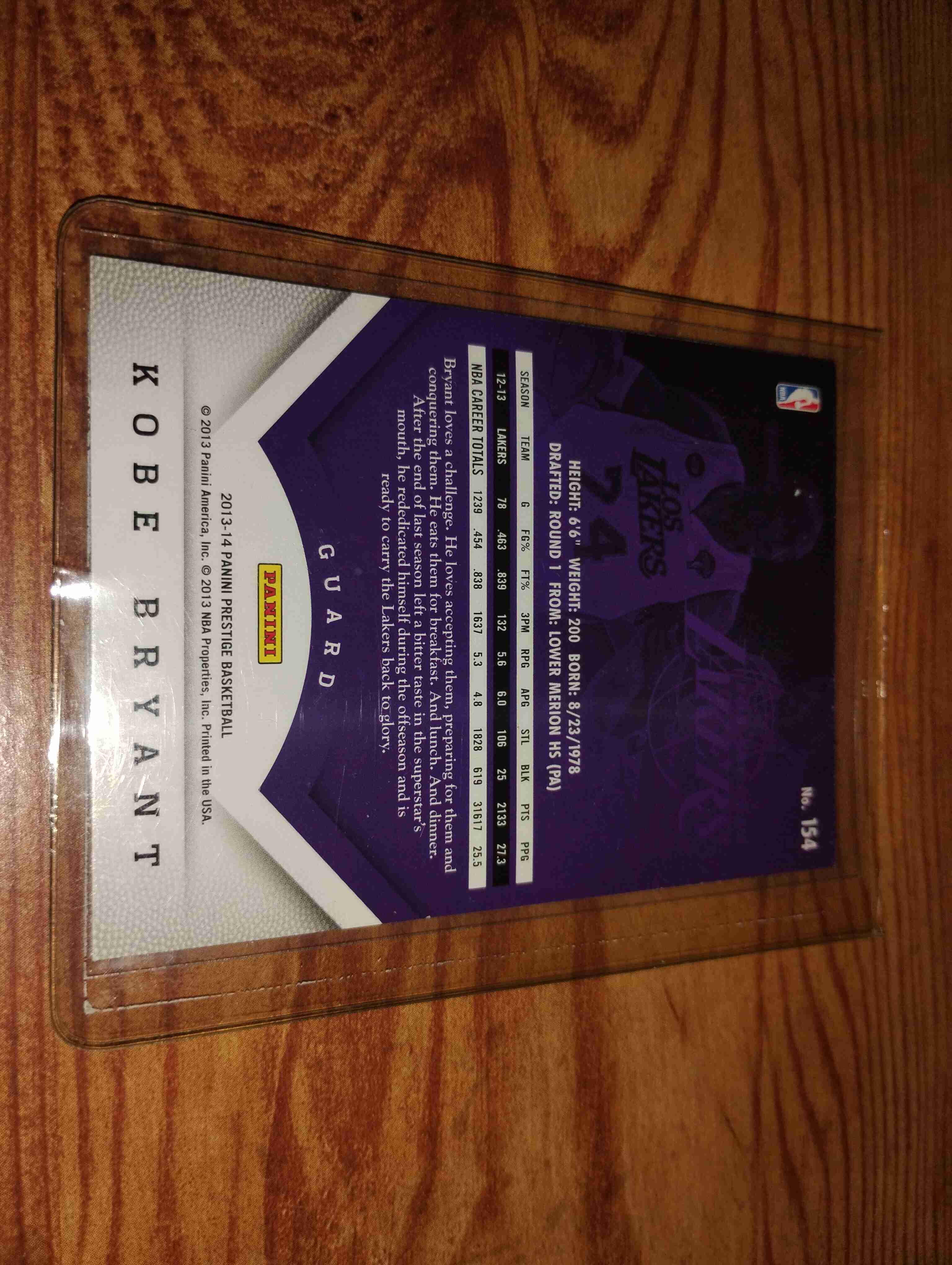 KOBE BRYANT 2013 PANINI PRESTIGE CARD #154