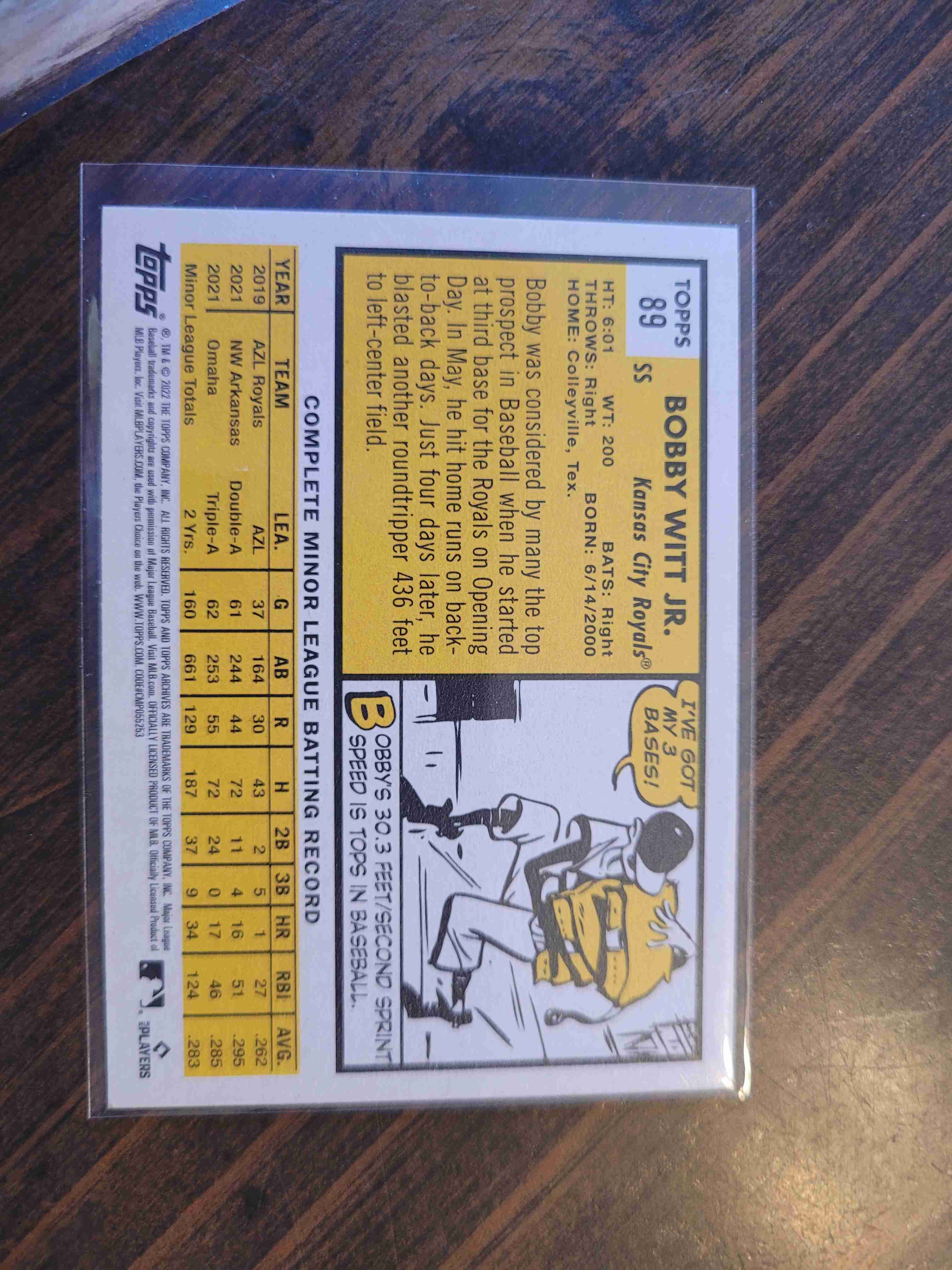 2022 TOPPS ARCHIVES BOBBY WITT JR #89 ROOKIE