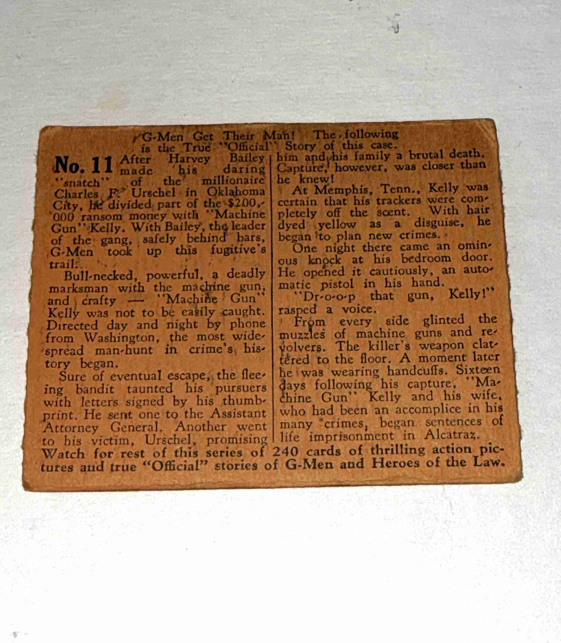 1936 Gum G-Men & Heroes Of The Law Machine-Gun Kelly #11