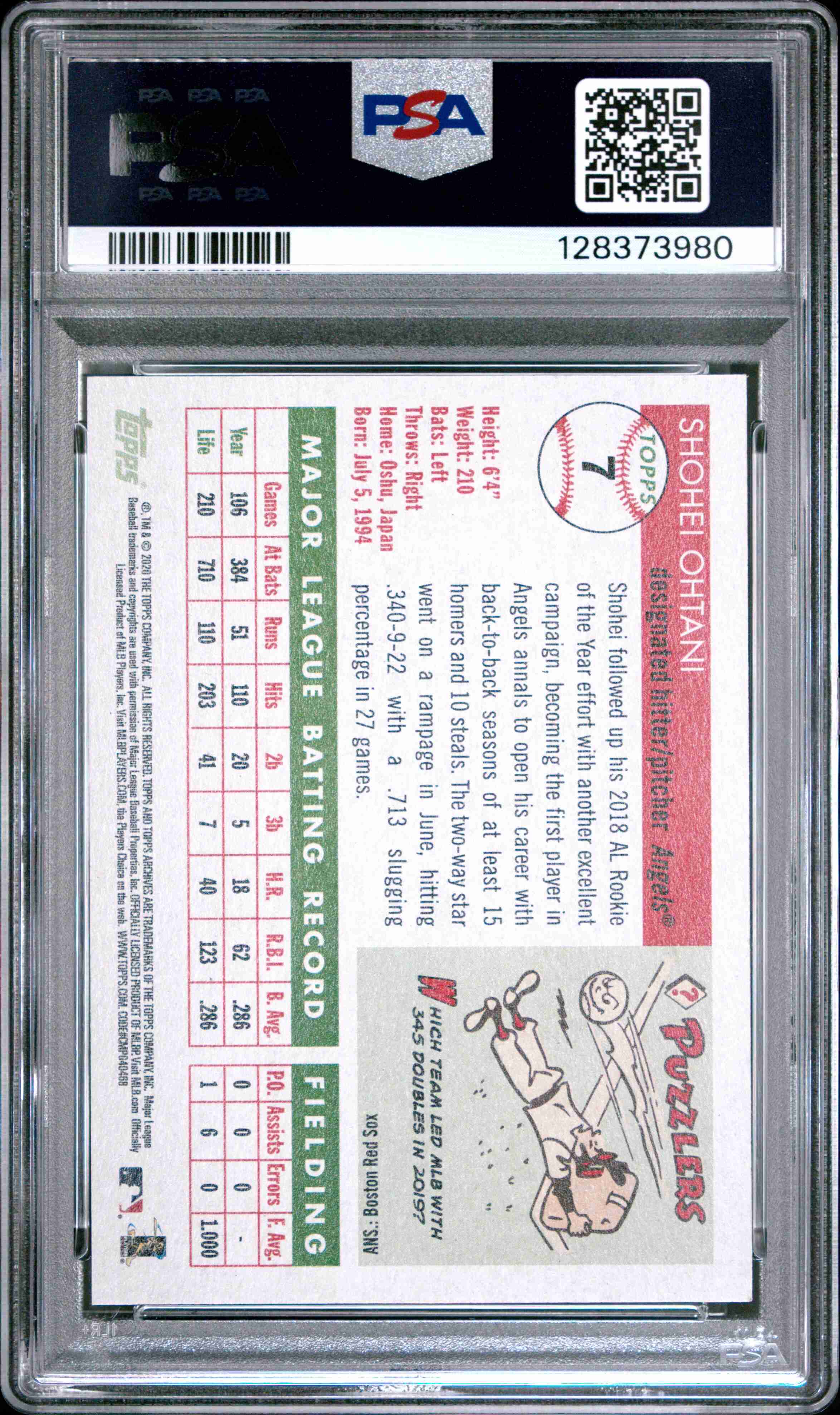 2020 TOPPS ARCHIVES #7 SHOHEI OHTANI PURPLE /175 PSA