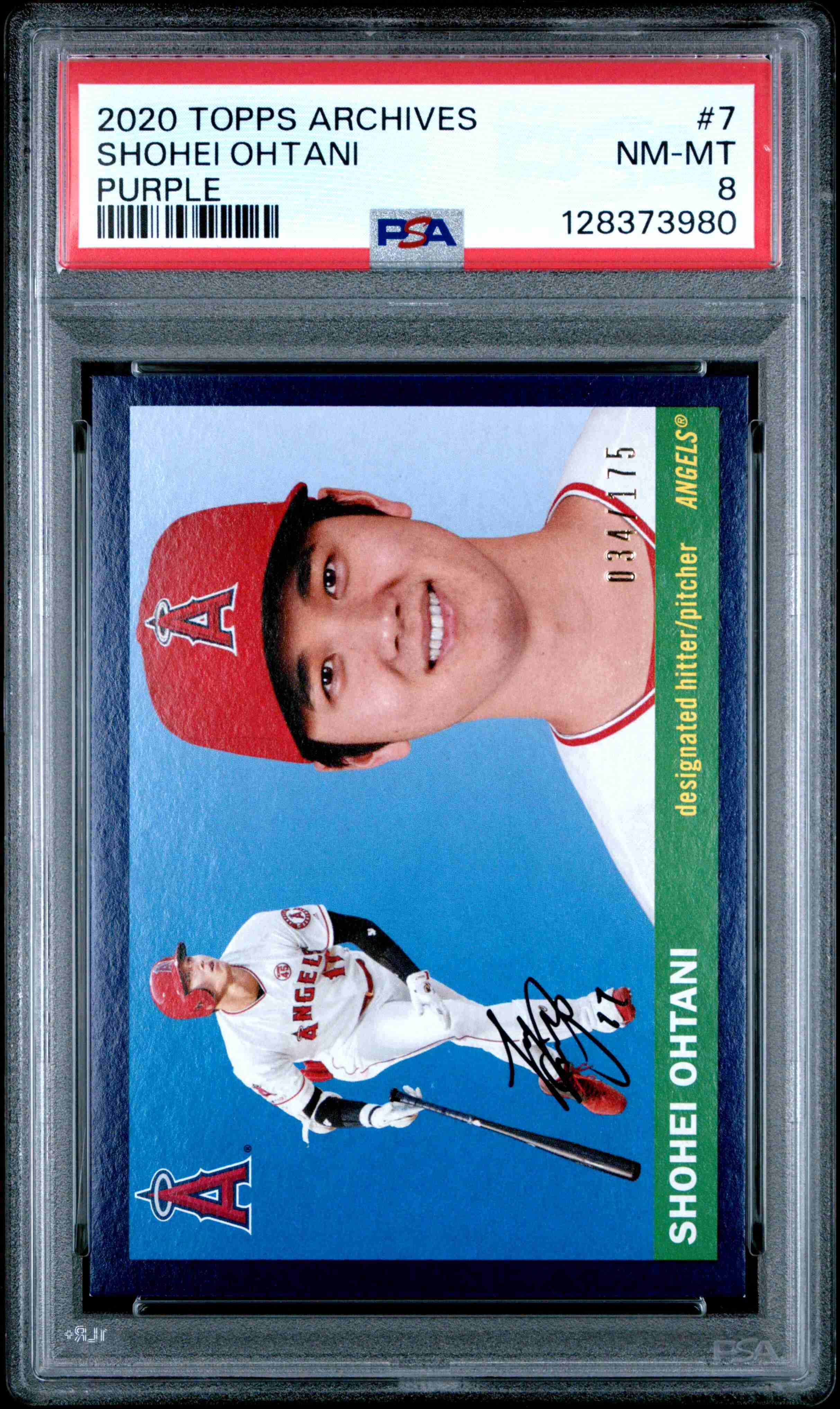2020 TOPPS ARCHIVES #7 SHOHEI OHTANI PURPLE /175 PSA 8. Card will be shipped securely between cardboard, bubble mailer with tracking. Please feel free to contact me if you have any questions.