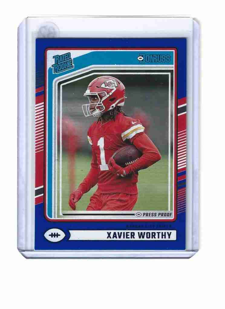 2024 Donruss #398 Xavier Worthy RC Blue Press Proof Rated Rookie Chiefs