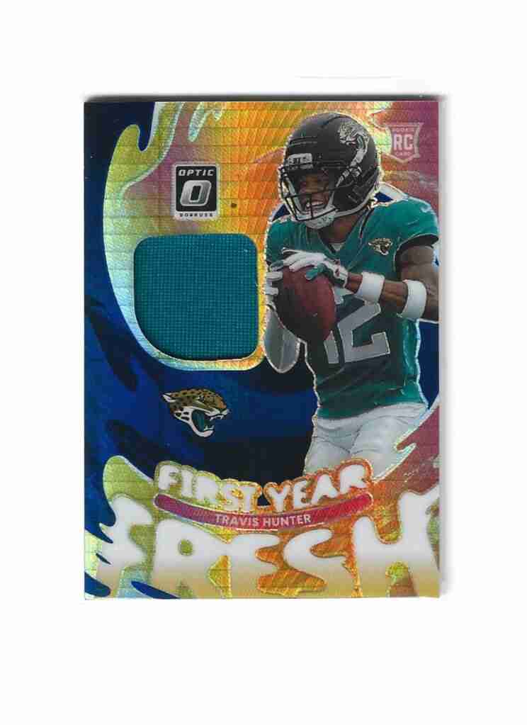 2025 Donruss Optic Travis Hunter First Year Fresh Blue Hyper Patch ROOKIE #FYFBH-THR