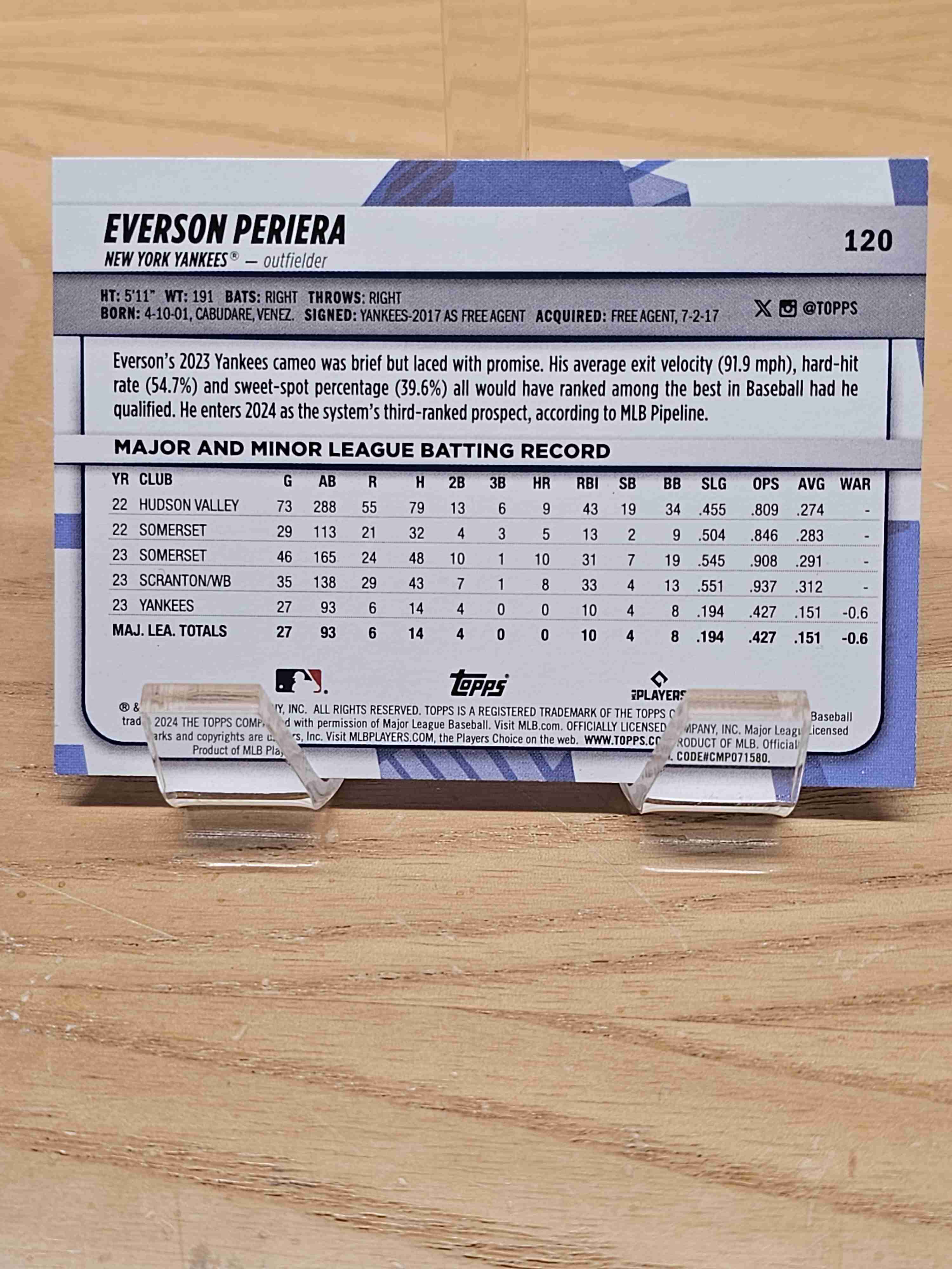 2024 Topps Big League Baseball Rookie RC Everson Periera New York Yankees Card #120