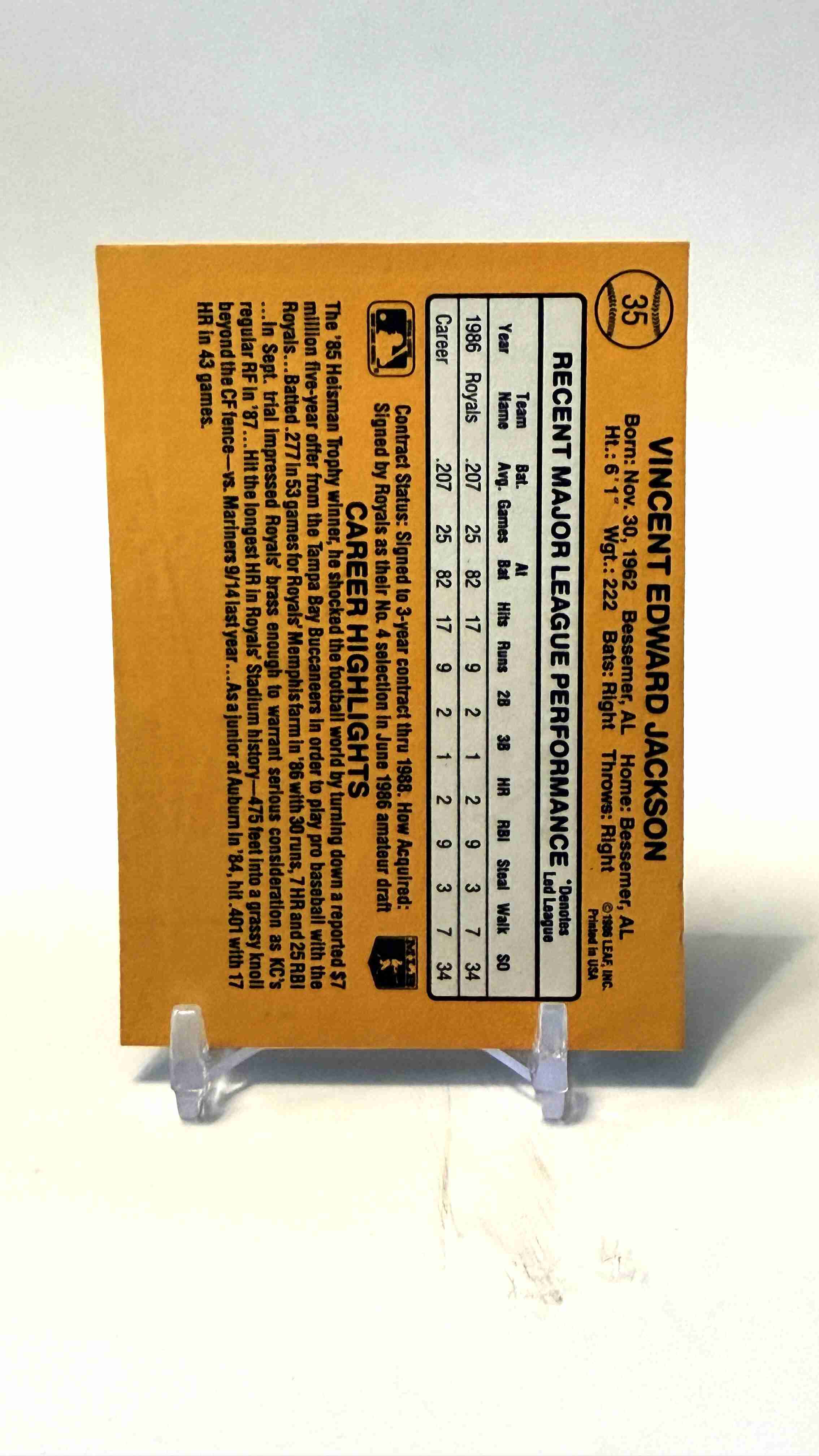 1987 Donruss # 35 Bo Jackson RC