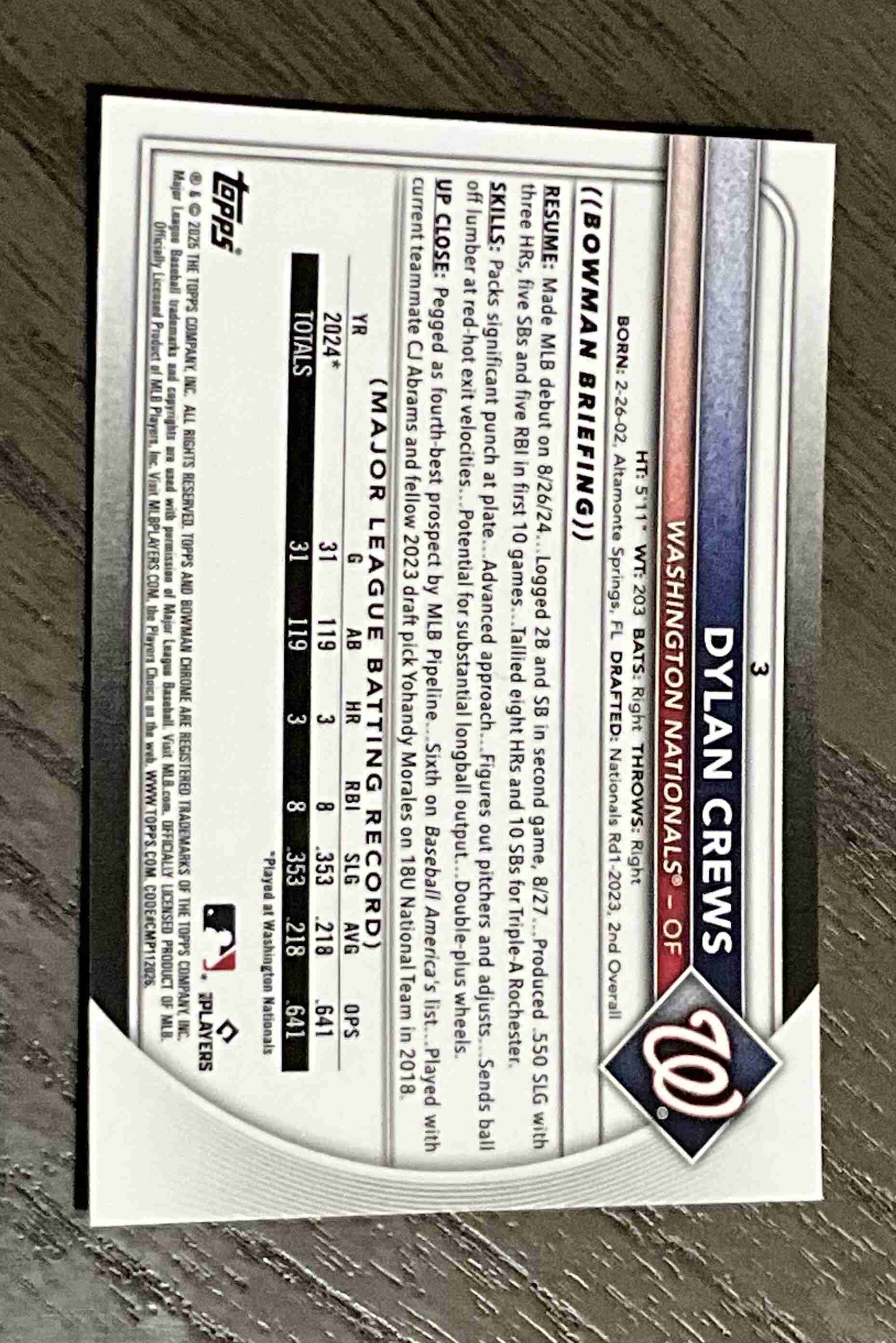 Dylan Crews Rookie 2025 Bowman Chrome Nationals