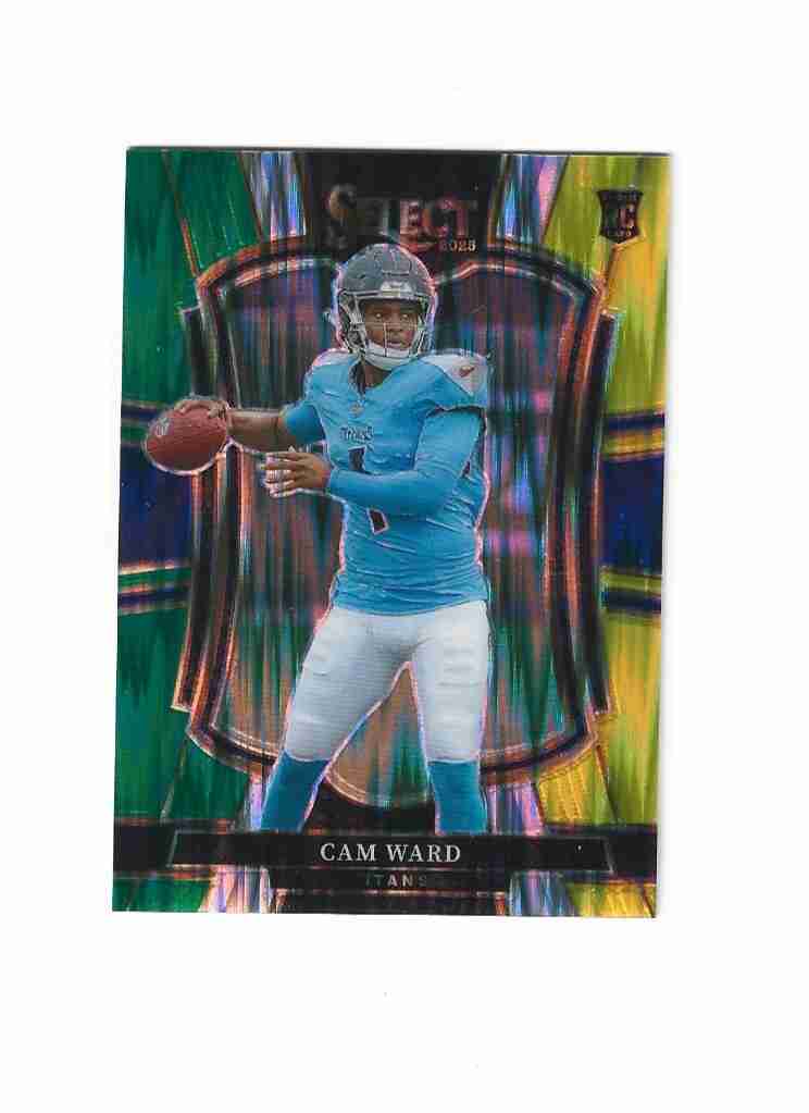 2025 Panini Select Cam Ward Rookie Green and Yellow Shock PREMIER LEVEL (RC) Titans #26